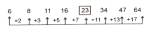 श्रृंखला (भाग-XVI)Total Questions: 5011. AZX, CBZ, EDB, GFD, ? [SSC CPO 11/11/2022 (Afternoon)](a) IHF(b) IFH(c) FHI(d) JHFCorrect Answer: (a) IHFSolution:12. PYWB, MVYD, ?, GPCH, DMEJ [SSC CPO 11/11/2022 (Afternoon)](a) JSBF(b) JTBF(c) JTBG(d) JSAFCorrect Answer: (d) JSAFSolution:13. _ F O _ L L W F _ O O L _ W F F _ O _ L [SSC CPO 11/11/2022 (Afternoon)](a) FOFLOLW(b) FFLLOOW(c) FFOLLOL(d) FOWLLFWCorrect Answer: (a) FOFLOLWSolution:14. 159, 146, ?, 120, 107, 94, 81 [SSC CPO 11/11/2022 (Afternoon)](a) 136(b) 131(c) 133(d) 140Correct Answer: (c) 133Solution:15. 6, 8, 11, 16, ?, 34, 47, 64 [Graduate Level 01/08/2022 (Shift - 4)](a) 27(b) 23(c) 29(d) 21Correct Answer: (b) 23Solution:16. EFGH, FEHG, ?, HCJE, IBKD [Graduate Level 01/08/2022 (Shift - 4)](a) GDHE(b) GDHF(c) GDIF(d) GDIECorrect Answer: (c) GDIFSolution:17. A _ _ R T A _ E _ T _ C E R _ A C _ _T [Graduate Level 01/08/2022 (Shift-4)](a) CECRATER(b) CECSATER(c) CECRBTER(d) CEDSATERCorrect Answer: (a) CECRATERSolution:18. UZVD, SCTG, ?, OIPM, MLNP [Graduate Level 02/08/2022 (Shift - 3)](a) QFRJ(b) PFRJ(c) PFSJ(d) QFSJCorrect Answer: (a) QFRJSolution:19. NOΙ _ _ _ RCN _ _ _ AERCN_IT_ERC_OITA _ _ C [Graduate Level 02/08/2022 (Shift - 3)](a) TEAIOTONERA(b) TOANERTAEOI(c) TONERATEΑΙΟ(d) TAEOITOANERCorrect Answer: (d) TAEOITOANERSolution:20. 98, 97, 101, 92, ? [Graduate Level 03/08/2022 (Shift - 3)](a) 91(b) 104(c) 93(d) 108Correct Answer: (d) 108Solution:Submit Quiz« Previous12345Next »