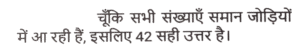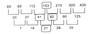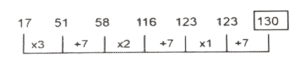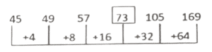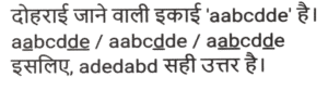 श्रृंखला (भाग-XVIII)Total Questions: 4511. 23, 29, 31, 37, 41, 43, 47,? [SSC CHSL 15/04/2021 (Morning)](a) 59(b) 49(c) 53(d) 51Correct Answer: (c) 53Solution:12. 45, 49, 57,?, 105, 169 [SSC CHSL 16/04/2021 (Afternoon)](a) 69(b) 73(c) 75(d) 70Correct Answer: (b) 73Solution:13. 63, 63, 56, 56, 49, 49, 42,? [SSC CHSL 06/08/2021 (Afternoon)](a) 42(b) 35(c) 30(d) 27Correct Answer: (a) 42Solution:14. kl _ pn _ klmp _ b _ lm _ nbk _ mpnb [SSC CHSL 09/08/2021 (Evening)](a) m, n, b, p, k, I(b) k, l, m, n, b, p(c) m, b, n, k, p, I(d) n, m, b, l, p, kCorrect Answer: (c) m, b, n, k, p, ISolution:15. abcd _ aabc_dea_cd_e [SSC CHSL 10/08/2021 (Morning)](a) adebdda(b) adedabd(c) adabded(d) dabdadeCorrect Answer: (b) adedabdSolution:16. 17,51,58,116,123,123,? [SSC CPO 23/11/2020 (Morning)](a) 150(b) 120(c) 130(d) 140Correct Answer: (c) 130Solution:17. YM, WO, UQ,?, QU [SSC CPO 23/11/2020 (Evening)](a) SS(b) TS(c) RS(d) STCorrect Answer: (a) SSSolution:18. ZBQS, WXLM, ?, QPBA, NLWU [SSC CPO 23/11/2020 (Evening)](a) TTGG(b) STGG(c) TSHG(d) TTHGCorrect Answer: (a) TTGGSolution:19. 17, 37, 77, 157, 317, ? [SSC CPO 23/11/2020 (Evening)](a) 683(b) 637(c) 649(d) 634Correct Answer: (b) 637Solution:20. 65, 85, 112, ?, 215, 305, 430 [SSC CPO 23/11/2020 (Evening)](a) 153(b) 150(c) 167(d) 161Correct Answer: (a) 153Solution:Submit Quiz« Previous12345Next »
