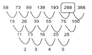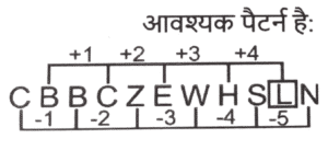 श्रृंखला (भाग-XVIII)Total Questions: 4541. aYd, fTi, kon, pJs, ? [SSC CGL 05/03/2020 (Morning)](a) uFw(b) VeX(c) uEx(d) uEwCorrect Answer: (c) uExSolution:42. SAT, VEW, YIZ,?, EUF [SSC CGL 05/03/2020 (Afternoon)](a) BOC(b) COD(c) BUK(d) FICCorrect Answer: (a) BOCSolution:43. 58, 73, 99, 138, 193,?, 368 [SSC CGL 06/03/2020 (Evening)](a) 268(b) 260(c) 312(d) 329Correct Answer: (a) 268Solution:44. eBd, hXi, kTn, nPs, ? [SSC CGL 07/03/2020 (Morning)](a) Qlv(b) pLw(c) qLx(d) qKxCorrect Answer: (c) qLxSolution:45. C, B, B, C, Z, E, W,H,S,?, N [SSC CGL 07/03/2020 (Afternoon)](a) L(b) K(c) P(d) 1Correct Answer: (a) LSolution:Submit Quiz« Previous12345