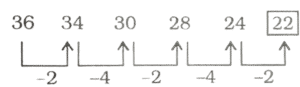 3. इस श्रृंखला में : 36, 34, 30, 28, 24,__________आगे कौन संख्या आनी चाहिए ? [आरआरसी नॉर्दन रेलवे ग्रुप 'डी' परीक्षा 06.05.2012]
