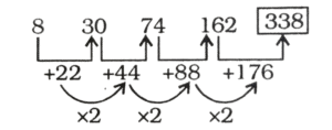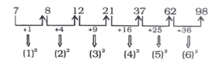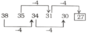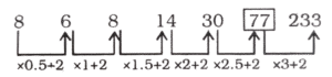 श्रृंखला (SERIES) (TYPE – I) (401 to 450)Total Questions: 501. श्रेणी को पूर्ण कीजिए। [RRB Junior Engineer परीक्षा, 25.05.2019 (तृतीय पाली)]4, 4, 8, 24, 96, (-)(1) 461(2) 448(3) 493(4) 480Correct Answer: (4) 480Solution:2. श्रेणी को पूर्ण कीजिए। [RRB Junior Engineer परीक्षा, 25.05.2019 (तृतीय पाली)]38, 35, 34, 31, 30, (-)(1) 28(2) 27(3) 25(4) 24Correct Answer: (2) 27Solution:3. निम्नलिखित श्रेणी में लुप्त संख्या ज्ञात कीजिए। [RRB Junior Engineer परीक्षा, 25.05.2019 (तृतीय पाली)]8, 6, 8,14, 30, (-), 233(1) 77(2) 55(3) 72(4) 60Correct Answer: (1) 77Solution:4. श्रेणी को पूर्ण कीजिए। [RRB Junior Engineer परीक्षा, 27.05.2019 (द्वितीय पाली)]540, 270, 90, 45, 15, (-)(1) 7.9(2) 6.5(3) 7.5(4) 6.8Correct Answer: (3) 7.5Solution:5. श्रेणी को पूर्ण कीजिए। [RRB Junior Engineer परीक्षा, 28.05.2019 (तृतीय पाली)]0.5, 0.55, 0.65, 0.8, (___)-(1) 0.85(2) 1(3) 0.9(4) 0.95Correct Answer: (2) 1Solution:6. दी गई श्रेणी में गलत संख्या को चुनें। [RRB Junior Engineer परीक्षा, 28.05.2019 (तृतीय पाली)]7, 8, 12, 21, 37, 62, 98(1) 61(2) 37(3) 12(4) 7Correct Answer: (1) 61Solution:7. श्रेणी को पूर्ण कीजिए। [RRB Junior Engineer परीक्षा, 28.05.2019 (तृतीय पाली)]2, 5, 10, 17, 26, (____)-(1) 34(2) 35(3) 33(4) 37Correct Answer: (4) 37Solution:8. श्रेणी को पूर्ण कीजिए। [RRB Junior Engineer परीक्षा 29.05.2019 (तृतीय पाली)]8, 30, 74, 162, (___)(1) 349(2) 338(3) 316(4) 301Correct Answer: (2) 338Solution:9. निम्नलिखित श्रेणी में अनुपस्थित संख्या ज्ञात कीजिए। [RRB Junior Engineer परीक्षा, 29.05.2019 (तृतीय पाली)]4, 7, 11, 18, 29, 47, (___), 123, 199(1) 102(2) 84(3) 70(4) 76Correct Answer: (4) 76Solution:7 + 4 = 1111 + 7 = 1818 + 11 = 2929 + 18 = 4747 + 29 = 7676 + 47 = 123123 + 76 = 19910. निम्नलिखित श्रेणी में अनुपस्थित संख्या ज्ञात कीजिए। [RRB Junior Engineer परीक्षा, 29.05.2019 (तृतीय पाली)]7776, (___), 216, 36, 6(1) 1263(2) 1275(3) 1296(4) 1287Correct Answer: (3) 1296Solution:7776 ÷ 6 = 12961296 ÷ 6 = 216216 ÷ 6 = 3636 ÷ 6 = 6Submit Quiz12345Next »