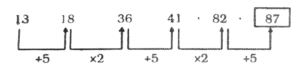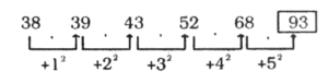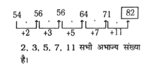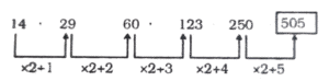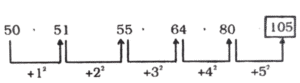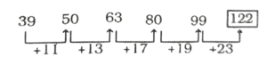 श्रृंखला (SERIES) (TYPE – I) (451 to 513)Total Questions: 6311. श्रृंखला में अगली संख्या ज्ञात करें। [RRB RPF SI एवं RPSF परीक्षा, 12.01.2019 (द्वितीय पाली)]39, 50, 63, 80, 99, ?(1) 122(2) 129(3) 116(4) 120Correct Answer: (1) 122Solution:11,13,17,19,23 सभी लगातार अभाज्य संख्या हैं।12. श्रेणी में अगली संख्या चुने। [RRB RPF SI एवं RPSF परीक्षा, 12.01.2019 (तृतीय पाली)]50, 51, 55, 64, 80, ?(1) 109(2) 112(3) 105(4) 107Correct Answer: (3) 105Solution:13. श्रेणी में अगली संख्या चुने। [RRB RPF SI एवं RPSF परीक्षा, 12.01.2019 (तृतीय पाली)]13, 18, 36, 41, 82, ?(1) 90(2) 86(3) 85(4) 87Correct Answer: (4) 87Solution:14. श्रेणी में अगली संख्या चुने। [RRB RPF SI एवं RPSF परीक्षा, 12.01.2019 (तृतीय पाली)]14, 29, 60, 123, 250, ?(1) 509(2) 507(3) 506(4) 505Correct Answer: (4) 505Solution:15. श्रेणी में अगली संख्या चुने। [RRB RPF SI एवं RPSF परीक्षा, 12.01.2019 (तृतीय पाली)]45, 47, 50, 55, 62, ?(1) 70(2) 73(3) 79(4) 76Correct Answer: (2) 73Solution:16. श्रेणी में अगली संख्या ज्ञात करें। [RRB RPF SI एवं RPSF परीक्षा, 13.01.2019 (द्वितीय पाली)]19, 24, 48, 53, 106, ?(1) 110(2) 107(3) 109(4) 111Correct Answer: (4) 111Solution:17. श्रेणी में अगली संख्या ज्ञात करें। [RRB RPF SI एवं RPSF परीक्षा, 13.01.2019 (द्वितीय पाली)]20, 41, 84, 171, 346, ?(1) 695(2) 699(3) 697(4) 702Correct Answer: (3) 697Solution:18. श्रेणी में अगली संख्या ज्ञात करें। [RRB RPF SI एवं RPSF परीक्षा, 13.01.2019 (द्वितीय पाली)]54, 56, 59, 64, 71, ?(1) 82(2) 80(3) 90(4) 96Correct Answer: (1) 82Solution:19. श्रेणी में अगली संख्या ज्ञात करें। [RRB RPF SI एवं RPSF परीक्षा, 13.01.2019 (द्वितीय पाली)]38, 39, 43, 52, 68, ?(1) 94(2) 93(3) 95(4) 96Correct Answer: (2) 93Solution:20. निम्न श्रृंखला में आने वाली अगली संख्या ज्ञात कीजिए : [RRB RPF SI एवं RPSF परीक्षा, 13.01.2019 (तृतीय पाली)]17, 19, 35, 109, 431, ?(1) 1719(2) 1729(3) 2161(4) 2155Correct Answer: (3) 2161Solution:Submit Quiz« Previous1234567Next »