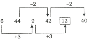 श्रृंखला (SERIES) (TYPE – I) (451 to 513)Total Questions: 6331. दिए गए विकल्पों में से उस संख्या का चयन कीजिए, जो निम्नलिखित श्रेणी में प्रश्न-चिह्न (?) के स्थान पर आ सकती है। [RRB NTPC CBT-I परीक्षा, 21.01.2021 (द्वितीय पाली)]100, 64, 36, ?(1) 16(2) 4(3) 81(4) 25Correct Answer: (1) 16Solution:(10)² = 100(8)² = 64(6)² = 36(4)² = 1632. दिए गए विकल्पों में से उन संख्याओं का चपन कीजिए, जो निम्नलिखित श्रेणी में प्रश्न-चिहों (?) के स्थान पर आ सकती हैं। [RRB NTPC CBT-1 परीक्षा, 21.01.2021 (द्वितीय पाली)]2, 0, 10, 2, 30, 6, 68, 12, ?, ?(1) 120: 20(2) 98: 24(3) 130: 20(4) 130: 30Correct Answer: (1) 120: 20Solution:(ii) 0 + 2 = 22 + 4 = 66 + 6 = 1212 + 8 = 2033. दिए गए विकल्पों में से उस संख्या का चयन कीजिए, जो निम्नलिखित श्रेणी में प्रश्न-चिह्न (?) के स्थान पर आ सकती है। [RRB NTPC CBT-1 परीक्षा, 21.01.2021 (द्वितीय पाली)]2, 12, 36, 80,?(1) 150(2) 140(3) 120(4) 144Correct Answer: (1) 150Solution:34. दिए गए विकल्पों में से उस संख्या की पहचान करें जो निम्नलिखित श्रेणी' से संबंधित नहीं है। [RRB NTPC CBT-1 परीक्षा, 23.01.2021 (प्रथम पाली)]17, 23, 30, 38, 46, 57(1) 23(2) 46(3) 57(4) 30Correct Answer: (2) 46Solution:17 + 6 = 2323 + 7 = 3030 + 8 = 3838 + 9 = 4747 + 10 = 57अतः, संख्या 46 दी गयीश्रृंखला से संबंधित नहीं है।35. उस विकल्प का चयन कीजिए, जो रिक्त स्थान की पूर्ति करके दी गई श्रेणी को पूर्ण करेगा। [RRB NTPC CBT-1 परीक्षा, 27.01.2021 (द्वितीय पाली)]6, 44, 9, 42,____, 40(1) 41(2) 15(3) 12(4) 46Correct Answer: (3) 12Solution:36. उस विकल्प का चयन कीजिए, जो रिक्त स्थान की पूर्ति करके दी गई श्रेणी को पूर्ण करेगा। [RRB NTPC CBT-I परीक्षा, 27.01.2021 (द्वितीय पाली)]1/16, 1/4, 1,___,16(1) 1/8(2) 4(3) 1/12(4) 8Correct Answer: (2) 4Solution:1/16 × 4 = 1/41/4 × 4 = 11 × 4 = 44 × 4 = 1637. उस संख्या का चयन करें, जो निम्नलिखित श्रेणी में प्रश्न चिह्न (?) के स्थान पर आ सकती है। [RRB NTPC CBT-1 परीक्षा, 04.02.2021 (प्रथम पाली)]4, 13, 27, 82, 165, ?(1) 497(2) 495(3) 494(4) 496Correct Answer: (4) 496Solution:4 × 3 + 1 = 1313 × 2 + 1 = 2727 × 3 + 1 = 8282 × 2 + 1 = 165165 × 3 + 1 = 49638. उस संख्या का चयन करें, जो निम्नलिखित श्रेणी में प्रश्न चिह्न (?) के स्थान पर आ सकती है। [RRB NTPC CBT-1 परीक्षा, 04.02.2021 (प्रथम पाली)]223, 111, ?, 27, 13, 6(1) 56(2) 54(3) 52(4) 55Correct Answer: (4) 55Solution:223 - 1 /2 = 222/2 = 111111 - 1 /2 = 110/2 = 5555 - 1 /2 = 54/2 = 2727 - 1 / 2 = 26/2 = 1313 - 1/2 = 12/2 = 639. दिए गए विकल्पों में उस संख्या का चयन करें, जो नीचे दी गई श्रेणी में प्रश्नचिह्न (?) के स्थान पर आ सकती हो। [RRB NTPC CBT-I परीक्षा, 03.03.2021 (प्रथम पाली)]3, 4, 7, 12, 19, 28, ?(1) 39(2) 48(3) 42(4) 37Correct Answer: (1) 39Solution:3 + 1 = 44 + 3 = 77 + 5 = 1212 + 7 = 1919 + 9 = 2828 + 11 = 3940. दिए गए विकल्पों में से उस संख्या का चयन कीजिए, जो निम्नलिखित श्रेणी में प्रश्न चिह्न (?) के स्थान पर आ सकती हो। [RRB NTPC CBT-I परीक्षा, 03.03.2021 (प्रथम पाली)]20, 90, 210, 380, ?(1) 600(2) 550(3) 620(4) 410Correct Answer: (1) 600Solution:Submit Quiz« Previous1234567Next »