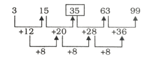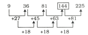 श्रृंखला (SERIES) (TYPE – I) (451 to 513)Total Questions: 6341. उस संख्या का चयन कीजिए, जो निम्नलिखित श्रेणी में प्रश्न-चिह्न (?) के स्थान पर आ सकती है। [RRB NTPC CBT-I परीक्षा, 09.03.2021 (प्रथम पाली)]9, 36, 81, ?, 225(1) 169(2) 100(3) 121(4) 144Correct Answer: (4) 144Solution:42. उस संख्या का चयन कीजिए, जो निम्नलिखित श्रेणी में प्रश्नचिह्न (?) के स्थान पर आ सकती है। [RRB NTPC CBT-1 परीक्षा, 09.03.2021 (प्रथम पाली)]3, 15, ?, 63, 99(1) 35(2) 80(3) 48(4) 24Correct Answer: (1) 35Solution:43. उस संख्या का चयन कीजिए, जो निम्नलिखित श्रेणी में प्रश्न चिह्न (?) के स्थान पर आ सकती है। [RRB NTPC CBT-I परीक्षा, 14.03.2021 (द्वितीय पाली)]1, 1, 2, 4, 6, 36, 42, ?(1) 48(2) 1664(3) 1764(4) 168Correct Answer: (3) 1764Solution:(1)² = 11 + 1 = 2(2)² = 42 + 4 = 6(6)² = 366 + 36 = 42(42)² = 176444. उस संख्या का चयन कीजिए, जो निम्नलिखित श्रेणी में प्रश्न चिह्न (?) के स्थान पर आ सकती है। [RRB NTPC CBT-1 परीक्षा, 14.03.2021 (द्वितीय पाली)]12, 15, 21, 30, 42, 57, ?(1) 80(2) 65(3) 75(4) 67Correct Answer: (3) 75Solution:12 + 3 = 1515 + 6 = 2121 + 9 = 3030 + 12 = 4242 + 15 = 5757 + 18 = 7545. उस विकल्प का चयन कीजिए, जो रिक्त स्थान की पूर्ति करके दी गई श्रेणी को पूर्ण करेगा। [RRB NTPC CBT-I परीक्षा, 01.04.2021 (प्रथम पाली)]7, 9, 13, 21___(1) 36(2) 30(3) 27(4) 37Correct Answer: (4) 37Solution:7 + 2 = 99 + 4 = 1313 + 8 = 2121 + 16 = 3746. उस विकल्प का चयन कीजिए, जो रिक्त स्थान की पूर्ति करके दी गई श्रेणी को पूर्ण करेगा। [RRB NTPC CBT-1 परीक्षा, 01.04.2021 (प्रथम पाली)]3, 4, 0, 9, -7, ___(1) 8(2) -32(3) 18(4) 7Correct Answer: (3) 18Solution:3 + (1)² = 44 - (2)² = 00 + (3)² = 99 - (4)² = -7-7 + (5)² = 1847. उस विकल्प का चयन कीजए, जो रिक्त स्थान की पूर्ति करके दी गई श्रेणी को पूर्ण करेगा। [RRB NTPC CBT-I परीक्षा 01.04.2021 (प्रथम पाली)]3, 4, 31, 156,___(1) 372(2) 373(3) 500(4) 499Correct Answer: (4) 499Solution:3 + (1)³ = 44 + (3)³ = 3131 + (5)³ = 156156 + (7)³ = 49948. उस संख्या का चयन करें, जो निम्नलिखित श्रेणी में प्रश्न चिह्न (?) के स्थान पर आ सकती है। [RRB NTPC CBT-I परीक्षा, 06.04.2021 (प्रथम पाली)]3, 6, 5, 12, ?, 24, 11, 48, 13(1) 9(2) 7(3) 6(4) 8Correct Answer: (2) 7Solution:49. उस संख्या का चयन करें, जो निम्नलिखित श्रेणी में प्रश्न चिह्न (?) के स्थान पर आ सकती है। [RRB NTPC CBT-I परीक्षा, 06.04.2021 (प्रथम पाली)]86, 42, 22, 10, ?(1) 8(2) 10(3) 6(4) 4Correct Answer: (3) 6Solution:86/2 - 1 = 43 - 1 = 4242/2 + 1 = 21 + 1 = 2222/2 - 1 = 11 - 1 = 1010/2 + 1 = 5 + 1 = 650. उस संख्या का चयन करें, जो निम्नलिखित श्रेणी में प्रश्न चिह्न (?) के स्थान पर आ सकती है। [RRB NTPC CBT-I परीक्षा, 06.04.2021 (प्रथम पाली)]600, 650, 702, ?, 812(1) 729(2) 760(3) 764(4) 756Correct Answer: (4) 756Solution:600 + 50 = 650650 + 52 = 702702 + 54 = 756756 + 56 = 812Submit Quiz« Previous1234567Next »