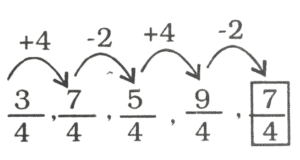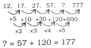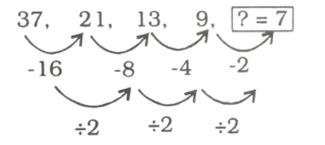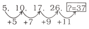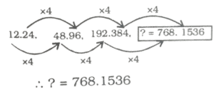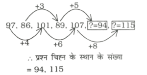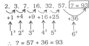 श्रृंखला (SERIES) (TYPE – I) (451 to 513)Total Questions: 6351. दिए विकल्पों में से उस संख्या का चयन करें, जो निम्न श्रृंखला में प्रश्नचिन्ह (?) के स्थान पर आ सकती है। [RRB NTPC CBT-I परीक्षा, 28.12.2020 (प्रथम पाली)]69, 55, 26, 13, ?(1) 5(2) 2(3) 4(4) 3Correct Answer: (3) 4Solution:69, 55, 26, 13, ?जिस प्रकार,(6 × 9) + 1 = 55(5 × 5) + 1 = 26(2 × 6) + 1 = 13उसी प्रकार,(1 × 3) + 1 = 4? = 452. उस संख्या का चयन करें, जो निम्न श्रृंखला में प्रश्नचिन्ह (?) के स्थान पर आ सकती है। [RRB NTPC CBT-I परीक्षा, 28.12.2020 (प्रथम पाली)]5, 10, 17, 26, ?(1) 35(2) 36(3) 37(4) 34Correct Answer: (3) 37Solution:53. उन संख्याओं का चयन करें, जो निम्न श्रेणी में प्रश्नचिन्ह (?) के स्थान पर आ सकती हैं। [RRB NTPC CBT-I परीक्षा, 28.12.2020 (प्रथम पाली)]97, 86, 101, 89, 107, ?, ?(1) 84; 125(2) 121; 144(3) 114; 169(4) 94; 115Correct Answer: (4) 94; 115Solution:54. दिए गए विकल्पों में से उस भिन्न का चयन कीजिए जो निम्नलिखित श्रेणी में प्रश्न चिन्ह (?) को प्रतिस्थापित करेगी। [RRB NTPC CBT-I परीक्षा, 09.01.2021 (प्रथम पाली)]3/4, 7/4, 5/4, 9/4, ?(1) 7/4(2) 9/4(3) 5/4(4) 13/4Correct Answer: (1) 7/4Solution:55. दिए गए विकल्पों में से उस संख्या का चयन कीजिए जो निम्नलिखित श्रेणी में प्रश्न चिन्ह (?) को प्रतिस्थापित करेगी। [RRB NTPC CBT-1 परीक्षा, 09.01.2021 (प्रथम पाली)]37, 21, 13, 9, ?(1) 7(2) 12(3) 8(4) 10Correct Answer: (1) 7Solution:56. उस संख्या का चयन करें, जो निम्नलिखित श्रेणी में प्रश्न चिन्ह (?) के स्थान पर आ सकती है। [RRB NTPC CBT-I परीक्षा, 03.02.2021 (द्वितीय पाली)]12.24, 48.96, 192.384, ?(1) 768.1546(2) 768.1536(3) 748.1526(4) 758.1536Correct Answer: (2) 768.1536Solution:57. उस संख्या का चयन करें, जो निम्नलिखित श्रेणी में प्रश्न चिह्न (?) के स्थान पर आ असती है। [RRB NTPC CBT-I परीक्षा, 03.02.2021 (द्वितीय पाली)]5, 9, 17, 33, 65, ?(1) 130(2) 131(3) 129(4) 128Correct Answer: (3) 129Solution:5, 9, 17, 33, 65, ?9 = (5 × 2) - 117 = (9 × 2) - 133 = (17 × 2) - 165 = (33 × 2) - 1उसी प्रकार,? = (65 × 2) - 1 = 12958. उस विकल्प कर चयन करें, जो नीचे दी गई श्रेणी में प्रश्न चिह्न (?) के स्थान पर आ सकता हो। [RRB NTPC CBT-I परीक्षा, 04.03.2021 (द्वितीय पाली)]2, 3, 7, 16, 32, 57, ?(1) 93(2) 92(3) 107(4) 100Correct Answer: (1) 93Solution:59. उस संख्या का चयन करें, जो नीचे दी गई श्रेणी में प्रश्न चिह्न (?) के स्थान पर आ सकती है। [RRB NTPC CBT-I परीक्षा, 04.03.2021 (द्वितीय पाली)]12, 17, 27, 57, ?, 777(1) 87(2) 117(3) 177(4) 107Correct Answer: (3) 177Solution:60. दिए गए विकल्पों में से उस अक्षर समूह का चयन कीजिए, जो निम्नलिखित श्रृंखला में प्रश्न चिह्न (?) के स्थान पर आ सकता है। [RRB NTPC CBT-I परीक्षा, 23.07.2021 (प्रथम पाली)]MANZ, OAPZ, QARZ, ?(1) RASZ(2) NAOZ(3) PAQZ(4) SATZCorrect Answer: (4) SATZSolution:Submit Quiz« Previous1234567Next »