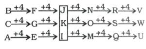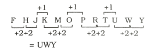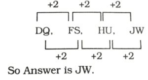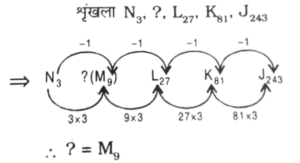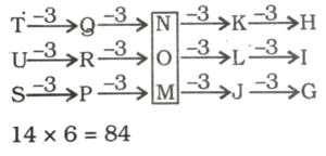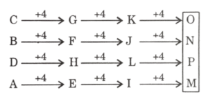 श्रृंखला (SERIES) (TYPE – II) (101 to 150)Total Questions: 5031. इस श्रृंखला को देखें: N3______7________1.27, K81, J243, निम्नलिखित में से कौन-सा संख्या रिक्त स्थान को भरने के लिए उपयुक्त होगी? [रेलवे NIPC CBT स्टेज-1 परीक्षा (स्नातक स्तरीय), 29.04.2016 प्रथम पाली](A) M3(B) M1(C) N3(D) M9(1) A(2) C(3) B(4) DCorrect Answer: (4) DSolution:32. दी गई श्रृंखला में प्रश्न चिन्ह (?) के स्थान पर क्या आएगा? [रेलवे NTPC CBT स्टेज-1 परीक्षा (स्नातक स्तरीय), 03.05.2016 द्वितीय पाली]AN, BO, CP, DQ, ER, FS, ?, HU_____(A) IU(B) JW(C) KX(D) GT(1) A(2) D(3) C(4) BCorrect Answer: (2) DSolution:33. निम्नलिखित श्रृंखला में अगला पद कौन सा होगा? [RRB NTPC CBT Stage-1 परीक्षा, 29.03.2016 (द्वितीय पाली)]DQ, FS, HU,____?(A) JW(B) JK(C) IW(D) BR(1) C(2) B(3) A(4) DCorrect Answer: (3) ASolution:34. श्रेणी में गायब (?) मालूम करें। [RRB NTPC CBT Stage-I परीक्षा, 29.03.2016 (तृतीय पाली)]BCA, FGE, ?, NOM, RSO, VWU(A) IJH(B) KLJ(C) KJI(D) JKI(1) C(2) A(3) D(4) BCorrect Answer: (3) DSolution:35. श्रेणी में नहीं दिये गए पद (?) को ज्ञात करें: [RRB NTPC CBT Stage-I परीक्षा, 30.03.2016 (प्रथम पाली)]TUS, ORP, ?, KLJ, HIG(A) ONM(B) MNO(C) NOM(D) MON(1) D(2) C(3) A(4) BCorrect Answer: (2) CSolution:36. श्रृंखला में लुप्त पद (?) ज्ञात करें: [RRB NTPC CBT Stage-I परीक्षा, 30.03.2016 (तृतीय पाली)]NA, PC, RE, TG, 7, XK, ZM(A) IV(B) VI(C) VII(D) VJ(1) D(2) B(3) C(4) ACorrect Answer: (2) BSolution:37. श्रृंखला में लुप्त पद (?) ज्ञात कीजिए: [RRB NTPC CBT Stage-1 परीक्षा, 31.03.2016 (प्रथम पाली)]CA, FD, IG, LJ, OM, ?, US, XV(A) QP(B) PR(C) QR(D) RP(1) B(2) A(3) D(4) CCorrect Answer: (3) DSolution:38. श्रृंखला में लुप्त पद ज्ञात कीजिए : [RRB NTPC CBT Stage-I परीक्षा, 31.03.2016 (तृतीय पाली)]AN, BO, CP, DO, ER, FS, ?, HU______(A) IU(B) JW(C) KX(D) GT(1) A(2) D(3) C(4) BCorrect Answer: (2) DSolution:39. CBDA, GFHE, KJLI, ? [RRB NTPC CBT Stage-I परीक्षा, 05.04.2016 (तृतीय पाली)](A) NOPM(B) MNOP(C) PMNO(D) ONPM(1) C(2) A(3) B(4) DCorrect Answer: (4) DSolution:40. श्रृंखला में (?) के स्थान पर क्या आयेगा? [RRB NTPC CBT Stage-1 परीक्षा, 19.04.2016 (द्वितीय पाली)]FHJ, KMO, PRT______?(A) UVZ(B) UXZ(C) UVW(D) UWY(1) B(2) D(3) C(4) ACorrect Answer: (2) DSolution:Submit Quiz« Previous12345Next »