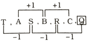 श्रृंखला (SERIES) (TYPE – II) (151 to 200)Total Questions: 5021. विमल ने कमल को निम्नलिखित वर्णमाला श्रृंखला दी है। सही विकल्प चुनने में कमल की मदद करें। [RRB Group 'D' Level-1 परीक्षा, 23.10.2018 (द्वितीय पाली)]ZB, YD,______WH,_______,UL.(1) VF, XZ(2) XE, VK(3) VE, XK(4) XF, VJCorrect Answer: (4) XF, VJSolution:22. निम्न श्रृंखला में आने वाले अगले अक्षर-युग्म को ज्ञात करें : [RRB Group 'D' Level-1 परीक्षा, 31.10.2018 (प्रथम पाली)]EN, FO, GP, HQ, ?(1) IV(2) IR(3) TC(4) RZCorrect Answer: (2) IRSolution:23. उपयुक्त विकल्प चुनकर निम्न श्रृंखला को पूरा करें : [RRB Group 'D' Level-I परीक्षा, 31.10.2018 (प्रथम पाली)]ZA, YB,_____,______VE.(1) ZC, VD(2) CW, DV(3) CX, DW(4) XC, WDCorrect Answer: (4) XC, WDSolution:24. निम्नलिखित श्रृंखला का अगला अक्षर ज्ञात करें। [RRB Group 'D' CBT परीक्षा, 17.09.2018 (प्रथम पाली)]C, D, F, I, ?(1) M(2) P(3) N(4) GCorrect Answer: (1) MSolution:25. नीचे दी गयी श्रृंखला का अगला पद ज्ञात कीजिए। [RRB Group 'D' CBT परीक्षा, 19.09.2018 (प्रथम पाली)]T, A, S, B, R, C, ?(1) T(2) Q(3) U(4) SCorrect Answer: (2) QSolution:26. निम्नलिखितश्रृंखला में अगला अक्षर ज्ञात करें। [RRB Group 'D' CBT परीक्षा, 20.09.2018 (तृतीय पाली)]E, G, I, L, O, S,_______?(1) B(2) T(3) W(4) ZCorrect Answer: (3) WSolution:27. इस श्रेणी का अगला पद क्या होगा ? [RRB Group 'D' CBT परीक्षा, 20.09.2018 (तृतीय पाली)]DW, EV, FU,______.(1) GT(2) HT(3) UT(4) STCorrect Answer: (1) GTSolution:28. दी गई श्रृंखला में '?' के स्थान पर आने वाला अक्षर ज्ञात करें। [RRB Group 'D' CBT परीक्षा, 22.09.2018 (द्वितीय पाली)]J, L, N, P, ?, T(1) R(2) S(3) V(4) UCorrect Answer: (1) RSolution:29. उस अक्षर का चयन करें, जो निम्नलिखित श्रृंखला में अगला होगा। [RRB Group 'D' CBT परीक्षा, 23.09.2018 (तृतीय पाली)]N, A, M, B, L, C,______(1) Q(2) S(3) U(4) KCorrect Answer: (4) KSolution:30. निम्नलिखित श्रेणी में अगला अक्षर क्या होगा? [RRB Group 'D' CBT परीक्षा, 24.09.2018 (प्रथम पाली)]B, F, I, M, P, T, ?(1) Y(2) U(3) T(4) WCorrect Answer: (4) WSolution:Submit Quiz« Previous12345Next »