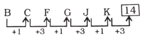 श्रृंखला (SERIES) (TYPE – II) (201 to 258)Total Questions: 5821. नीचे दिए गए अक्षरों के क्रम से लापता अक्षर का चयन करें। [RRB ALP एवं Technician परीक्षा, 31.08.2018 (तृतीय पाली)]K, M, P, T,_____(1) X(2) S(3) Y(4) ZCorrect Answer: (3) YSolution:22. निम्नलिखित श्रृंखला में, एक शब्द गायब है जैसा कि प्रश्न चिह्न (?) द्वारा दिखाया गया है। दिए गए विकल्पों में से लापता शब्द का चयन करें। [RRB ALP एवं Technician परीक्षा, 04.09.2018 (प्रथम पाली)]A, BB, CCC, DDDD, ?(1) HHHHHH(2) FFFFFF(3) ΕΕΕΕΕ(4) GGGGGGCorrect Answer: (3) ΕΕΕΕΕSolution:23. श्रेणी को पूर्ण करें। [RRB Junior Engineer परीक्षा, 22.05.2019 (तृतीय पाली)]ZZ, TX, NU, HP, (____)(1) PR(2) MC(3) BI(4) AJCorrect Answer: (3) BISolution:24. श्रेणी को पूर्ण करें। [RRB Junior Engineer परीक्षा, 23.05.2019 (द्वितीय पाली)]Z, W, T, Q, (_____)(1) S(2) P(3) 0(4) NCorrect Answer: (4) NSolution:25. निम्नलिखित श्रेणी में अनुपस्थित अक्षर-समूह ज्ञात कीजिए। [RRB Junior Engineer परीक्षा, 23.05.2019 (द्वितीय पाली)]XZ, BX, FU, (____), NL(1) UN(2) GS(3) JQ(4) SLCorrect Answer: (3) JQSolution:26. श्रेणी को पूरा करें। [RRB Junior Engineer परीक्षा, 23.05.2019 (तृतीय पाली)]Z, X, T, N, (___)(1) Y(2) D(3) U(4) FCorrect Answer: (4) FSolution:27. निम्नलिखित श्रेणी में अक्षर के अनुपस्थित समूह को ज्ञात करें। [RRB Junior Engineer परीक्षा, 23.05.2019 (तृतीय पाली)]YXZ, XWY, (___), VUW, UTV, TSU(1) VWT(2) WVX(3) WXV(4) TVXCorrect Answer: (2) WVXSolution:28. श्रेणी को पूरा करें [RRB Junior Engineer परीक्षा, 24.05.2019 (द्वितीय पाली)]QY, JT, EO, BJ, (___)(1) AO(2) LP(3) ΑΕ(4) SXCorrect Answer: (3) ΑΕSolution:29. निम्नलिखित श्रेणी में अनुपस्थित अक्षर समूह को ज्ञात करें। [RRB Junior Engineer परीक्षा, 24.05.2019 (तृतीय पाली)]VA, ND, (-), DP, BY(1) NR(2) HI(3) SE(4) TUCorrect Answer: (2) HISolution:30. श्रेणी को पूर्ण करें। [RRB Junior Engineer परीक्षा, 25.05.2019 (तृतीय पाली)]B, C, F, G, J, K, (___)(1) Ο(2) M(3) N(4) PCorrect Answer: (3) NSolution:Submit Quiz« Previous123456Next »