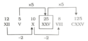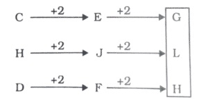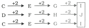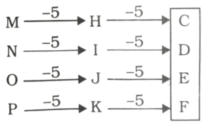 श्रृंखला (SERIES) (TYPE – II) (201 to 258)Total Questions: 5841. निम्नलिखित श्रेणी में अनुपस्थित अक्षर-समूह ज्ञात कीजिए। [RRB Junior Engineer परीक्षा, 02.06.2019 (द्वितीय पाली)]BV, ET, HR, KP, (___), QL(1) UV(2) QP(3) NN(4) PQCorrect Answer: (3) NNSolution:42. निम्नलिखित श्रेणी में से अनुपस्थित अक्षर ज्ञात कीजिए। [RRB Junior Engineer परीक्षा, 26.06.2019 (तृतीय पाली)]PTVX, AEGI, (___), WACE, HLNP(1) KNOT(2) LPRT(3) KPQS(4) HKLOCorrect Answer: (2) LPRTSolution:43. श्रेणी को पूर्ण करें: [RRB Junior Engineer परीक्षा, 28.06.2019 (तृतीय पाली)]HIG, KLJ, NOM, (___)(1) QRP(2) QRS(3) RPQ(4) PQRCorrect Answer: (1) QRPSolution:44. दिए गए विकल्पों में से उस अक्षर का चयन कीजिए, जो निम्नलिखित श्रेणी में प्रश्न-चिह्न (?) के स्थान पर आ सकता है। [RRB NTPC CBT-I परीक्षा, 21.01.2021 (द्वितीय पाली)]A, D, I, ?, Y(1) g(2) R(3) P(4) NCorrect Answer: (3) PSolution:45. दिए गए विकल्पों में से उस अक्षर का चयन कीजिए, जो निम्नलिखित श्रेणी में प्रश्न-चिह्न (?) के स्थान पर आ सकता है। [RRB NTPC CBT-I परीक्षा, 21.01.2021 (द्वितीय पाली)]a, z, b, y, c, ?(1) e(2) x(3) d(4) cCorrect Answer: (2) xSolution:46. उस विकल्प का चयन कीजिए, जो रिक्त स्थान की पूर्ति करके दी गई श्रेणी को पूर्ण करेगा। [RRB NTPC CBT-I परीक्षा, 27.01.2021 (द्वितीय पाली)]XII, V, X,____,VIII, CXXV(1) XXVI(2) XII(3) XXV(4) XXCorrect Answer: (3) XXVSolution:47. उस विकल्प का चयन कीजिए, जो रिक्त स्थान की पूर्ति करके दी गई श्रेणी को पूर्ण करेगा। [RRB NTPC CBT-I परीक्षा, 27.01.2021 (द्वितीय पाली)]CDC, EFE, GHG,_____(1) GHI(2) GIJ(3) IJI(4) IJKCorrect Answer: (3) IJISolution:48. उस अक्षर समूह का चयन करें, जो दी गई श्रृंखला में अगले स्थान पर आएगा। [RRB NTPC CBT-1 परीक्षा, 01.04.2021 (प्रथम पाली)]CHD, EJF,____(1) GLH(2) GLG(3) GNH(4) GNGCorrect Answer: (1) GLHSolution:49. उस अक्षर समूह का चयन करें, जो दी गई श्रृंखला में अगले स्थान पर आएगा। [RRB NTPC CBT-I परीक्षा, 01.04.2021 (प्रथम पाली)]MNOP, HIJK,_____(1) CDEF(2) DEFG(3) BCDE(4) DEFCCorrect Answer: (1) CDEFSolution:50. उस अक्षर का चयन करें, जो निम्नलिखित श्रृंखला में प्रश्न चिह्न (?) के स्थान पर आ सकता है। [RRB NTPC CBT-I परीक्षा, 06.04.2021 (प्रथम पाली)]C, A, E, C, G, ?(1) Η(2) G(3) E(4) JCorrect Answer: (3) ESolution:Submit Quiz« Previous123456Next »