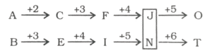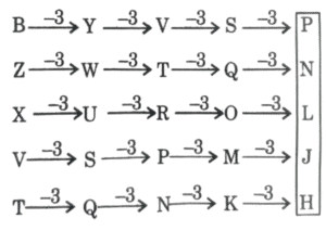 श्रृंखला (SERIES) (TYPE – II) (51 to 100)Total Questions: 5031. निम्नलिखित अक्षर श्रृंखला में प्रश्नवाचक चिह्न (?) के स्थान पर क्या आएगा? [आरआरबी सिकंदराबाद लोको पायलट, 15.06.2014]AC DG HL ? SY(1) QU(2) MR(3) NS(4) NUCorrect Answer: (2) MRSolution:32. सही विकल्प का चयन करें जो उसी पैटर्न को जारी रखेगा और दी गई श्रृंखला में प्रश्न चिह्न को प्रतिस्थापित करेगा : [RRC पटना ग्रपु (डी) परीक्षा, 16.11.2014, प्रथम पाली]Z9A, X7D, ?, T3J, RIM(1) W6F(2) S3H(3) G9V(4) V5GCorrect Answer: (4) V5GSolution:33. श्रृंखला में लुप्त पद (?) ज्ञात करें : [RRC NTPC ग्रैजुएट लेवल (CBT) परीक्षा, 30.03.2016, Shift-III]NA, PC, RE, TG, ?, XK, ZM(A) IV(B) VI(C) VII(D) VJ(1) D(2) B(3) C(4) ACorrect Answer: (2) BSolution:34. श्रृंखला में लुप्त पद (?) ज्ञात कीजिए : [RRC NTPC पैजुएट लेवल (CBT) परीक्षा, 31.03.2016, shift-I]CA, FD, IG, LJ, OM, ?, US, XV(A) OP(B) PR(C) OR(D) RP(1) B(2) A(3) D(4) CCorrect Answer: (3) DSolution:35. श्रृंखला में लुप्त पद ज्ञात कीजिए : [रेलवे NTPC (CBT) प्रारंभिक परीक्षा Shift-III]AN, BO, CP, DO, ER, FS, ?, HU____(A) IU(B) JW(C) KX(D) GT(1) A(2) D(3) C(4) BCorrect Answer: (2) DSolution:36. उस विकल्प का चयन कीजिए जो श्रृंखला में उपयुक्त है : [RRB NTPC ग्रेजुएट परीक्षा, 19.04.2016]BZXVT, YWUSO, VTRPN, SQOMK, ?(A) HLJNP(B) UPRTN(C) PNLJH(D) OMKJH(1) D(2) B(3) C(4) ACorrect Answer: (3) CSolution:37. श्रृंखला में लुप्त पद ज्ञात करें : [RRB नन-टेक्निकल पॉपुलर कटेगरी पैजुएट (CBT) (परीक्षा) 28.04.2016]AB, CE, FL, ?, ОТ(A) JM(C) HO(B) GK(D) JN(1) C(2) B(3) A(4) DCorrect Answer: (4) DSolution:38. श्रृंखला में वर्षों का अगला सेट क्या होगा ? [RRB NTPC ग्रेजुएट लेबल CBT (मुख्य परीक्षा) 16.01.2017]AZ, BY, CX,____(1) DU(2) DW(3) DV(4) DYCorrect Answer: (2) DWSolution:39. श्रृंखला में वर्षों का अगला सेट क्या होगा ? [RRB NTPC पैजुएट लेबल CBT (मुख्य परीक्षा) 16.01.2017]PBA, OCB, RDC, SED,_____(1) TFD(2) TFE(3) TGE(4) RSTCorrect Answer: (2) TFESolution:40. अंग्रेजी वर्णमाला श्रृंखला में लुप्त पद (?) ज्ञात कीजिए: [RRB NTPC पैजुएट लेवल CBT (मुख्य परीक्षा) 17.01.2017]AC, DG, HL, ?, SY,____(1) NR(2) NG(3) MR(4) MQCorrect Answer: (3) MRSolution:Submit Quiz« Previous12345Next »