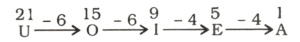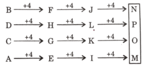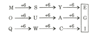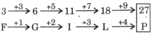 श्रृंखला (SERIES) (TYPE – II) (51 to 100)Total Questions: 5041. श्रृंखला में लुप्त अक्षर (?) ज्ञात कीजिए : [RRB NTPC वैजुएट लेवल CBT (मुख्य परीक्षा) 17.01.2017]B, Z, W, S, N, ?(1) H(2) J(3) I(4) GCorrect Answer: (1) HSolution:42. निम्नलिखित अंग्रेजी वर्णमाला श्रृंखला में अगला पद क्या होगा ? [RRB NTPC ग्रेजुएट लेबल CBT (मुख्य परीक्षा) 17.01.2017]ACBD, FHGI, KMLN, ?(1) OPQR(2) PRQS(3) OQPR(4) PQRSCorrect Answer: (2) PRQSSolution:43. दिए गए विकल्पों में से सर्वाधिक उपयुक्त को चुन कर वर्णमालाश्रृंखला को पूरा करें। [RRB NTPC ग्रैजुएट लेवल CBT (मुख्य परीक्षा) 18.01.2017]U, O, ?, E, A(1) B(2) T(4) 1(4) ICorrect Answer: (4) ISolution:44. श्रृंखला का अगला पद क्या है? [RRB NTPC ग्रैजुएट लेबल CBT (मुख्य परीक्षा) 18.01.2017]I, V, X, L, C, D, ?(1) LX(2) XD(3) M(4) CDCorrect Answer: (3) MSolution:45. श्रृंखला का अगला पद ज्ञात कीजिए : [RRB NTPC ग्रैजुएट लेबल CBT (मुख्य परीक्षा) 19.01.2017 (Shift-II)]BDCA, FHGE, JLKI, ?(1) MNPO(2) ONMP(3) NPOM(4) MONPCorrect Answer: (3) NPOMSolution:46. श्रृंखला में आने वाले अगले दो अक्षर कौन-से हैं? [RRB NTPC वैजुएट लेबल CBT (मुख्य परीक्षा) 19.01.2017 (Shift-II)]A B B D E E E H I I I_____(1) I I(2) J J(3) I J(4) I MCorrect Answer: (4) I MSolution:47. (*) के स्थान पर कौन-सा वर्ण आएगा ? [RRB NTPC ग्रैजुएट लेबल CBT (मुख्य परीक्षा) 19.01.2017 (Shift-II)]A, D, I, *, Y(1) L(2) T(3) N(4) PCorrect Answer: (4) PSolution:48. श्रृंखला का अगला पद ज्ञात करें : [RRB NTPC ग्रैजुएट लेबल CBT (मुख्य परीक्षा) 19.01.2017 (Shift-III)]MOQ, SUW, YAC,____(1) GEI(2) EIG(3) DBF(4) EGICorrect Answer: (4) EGISolution:49. श्रृंखला का अगला पद ज्ञात कीजिए : [RRB NTPC ग्रैजुएट लेबल CBT (मुख्य परीक्षा) 19.01.2017 (Shift-III)]3F, 6G, 1 II, 18L,_____(1) 25N(2) 27N(3) 25P(4) 27PCorrect Answer: (4) 27PSolution:50. उस सही विकल्प को चुनें जो निम्नलिखित श्रृंखला को पूरा करेगा : [RRB असिस्टेंट लोको पायलट (ALP)/ टेक्नीशियन (CBT) परीक्षा 09.08.2018 द्वितीय पाली]ACT, EGG, INK,_____(1) BYE(2) OLD(3) FUN(4) DIPCorrect Answer: (2) OLDSolution:श्रृंखला स्वर से शुरू होने वाले तीन-अक्षरीय शब्दों से बना है।ACT → EGG → INK → OLDSubmit Quiz« Previous12345