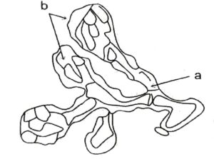 Correct Answer: (d) a- श्वासनालियां (Bronchioles), b-एल्वियोली (Alveoli) (गैसों का आदान-प्रदान)