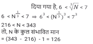 1. यदि ³√N, जो कि 6 और 7 के मध्य स्थित है, और जहाँ N एक पूर्णांक है, तो N के कितने मान हो सकते है? [SSC CGL Tier II (08/08/2022)]