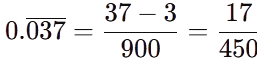 3. 0.037̅ को p/q रूप में व्यक्त कीजिए, जहाँ p एक पूर्णांक है और q एक प्राकृतिक संख्या है। [RRB NTPC 09/01/2021 (Morning)]