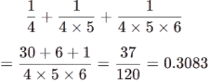 संख्या पद्धति-रेलवे गणित Part- 6Total Questions: 5031. 6 अंकों की सबसे छोटी और सबसे बड़ी धनात्मक संख्याओं का योग ज्ञात कीजिए जिनमें केवल अंक 0, 4, 6 हैं और इनमें से प्रत्येक अंक कम से कम एक बार आता है। [RRB NTPC 09/02/2021 (Evening)](a) 1066646 (b) 604604 (c) 666666 (d) 666444Correct Answer: (a) 1066646 Solution:0, 4 और 6 का प्रयोग करके बनाई गई 6 अंकों की सबसे छोटी संख्या = 4000060, 4 और 6 का उपयोग करके बनाई गई 6 अंकों की सबसे बड़ी संख्या = 666640योग = 666640 + 400006 = 10,66,64632. एक संख्या में ( 1/3 - 1/4 ) जोड़ा जाता है। इस प्रकार प्राप्त योग से 1/3 का 1/4 घटाया जाता है और शेषफल 1/3 + 1/4 प्राप्त होता है, संख्या ज्ञात कीजिए। [RRB NTPC 10/02/2021 (Morning)](a) 2/3 (b) 7/12(c) 1/12 (d) 4/9Correct Answer: (b) 7/12Solution:माना, संख्या = x 33. सबसे छोटी प्राकृतिक संख्या N ज्ञात कीजिए जिसका गुणनफल 288 × N एक पूर्ण घन हो। [RRB NTPC 10/02/2021 (Morning)](a) 8 (b) 9 (c) 12 (d) 6Correct Answer: (d) 6Solution:288 का गुणनखंडन करने पर हमें प्राप्त होता है -2×2×2×2×2×2×3 288 का एक पूर्ण घन बनाने के लिए (2 × 3) से गुणा किया जाएगा।तब 288 × 6, अब हम कह सकते हैं कि 6 सबसे छोटी प्राकृतिक संख्या है।34. 85 से कम सभी सम प्राकृतिक संख्याओं का योग ज्ञात कीजिए [RRB NTPC 10/02/2021 (Evening)](a) 840 (b) 1806(c) 1408 (d) 4700Correct Answer: (b) 1806Solution:a (पहला पद) = 2, tn (अंतिम पद) = 84, सामान्य अंतर d = 2,पदों की संख्या, tₙ=a+(n−1)d ⇒ 84 = 2 + (n - 1)2⇒ (84 - 2)/2 = n - 1 ⇒ n = 41 + 1 = 42अब, योग (Sn) = n/2 {2a + (n - 1)d}= 42/2 (2 × 2 + 41 × 2) ⇒ 21 × 86 = 180635. निम्नलिखित में से कौन सा 3.14 × 10⁶ के समतुल्य है? [RRB NTPC 10/02/2021 (Evening)](a) 3140000 (b) 314000 (c) 3140 (d) 31.40000Correct Answer: (a) 3140000 Solution:3.14 × 10⁶ = 314/100 × 1000000 = 314000036. एक संख्या, x, को 7 से विभाजित करने पर 1 शेष बचता है और दूसरी संख्या, y, को 7 से विभाजित करने पर 2 शेष बचता है। यदि x + y को 7 से विभाजित किया जाए तो शेषफल क्या होगा? [RRB NTPC 10/02/2021 (Evening)](a) 3 (b) 4 (c) 1 (d) 2Correct Answer: (a) 3 Solution:भाज्य = (भाजक × भागफल) + शेषमाना कि p भागफल है जब x को 7 से विभाजित किया जाता है और q भागफल होता है जब y को 7 से विभाजित किया जाता है।X = (7 × p) + 1 और Y = (7 × q) + 2इसलिए, X + Y = 7p + 7q + 1 + 2 = 7(p + q) + 3⇒ (X + Y) को 7 से विभाजित करने पर 3 शेष बचता है।37. चार अंकों की सबसे बड़ी संख्या ज्ञात कीजिए जो एक पूर्ण वर्ग हो? [RRB NTPC 10/02/2021 (Evening)](a) 9801 (b) 9999 (c) 9000 (d) 9008Correct Answer: (a) 9801 Solution:चार अंकों की सबसे बड़ी संख्या 9999 है।लंबी विभाजन विधि से वर्गमूल निकालने के बाद हमें शेष के रूप में 198 मिलता है,इसलिए अब हम एक पूर्ण वर्ग संख्या प्राप्त करने के लिए 9999 से 198 घटाते हैं जो कि 9999 - 198 = 9801 है।38. छह क्रमागत संख्याओं में से पहली तीन संख्याओं का योग 27 है। अगली तीन संख्याओं का योग क्या है? [RRB NTPC 11/02/2021 (Morning)](a) 12 (b) 63 (c) 36(d) 10Correct Answer: (c) 36Solution:माना कि छह क्रमागत संख्याएँ हैं= x, x + 1, x + 2, x + 3, x + 4, x + 5X + x + 1 + x + 2 = 27⇒ 3x + 3 = 27 ⇒ 3x = 24 ⇒ x = 8अगली तीन संख्याओं का योग = 3x + 12 = 3 × 8 + 12 = 3639. 1/4 + 1/(4×5) + 1/(4×5×6) का मान चार दशमलव बिंदुओं तक ज्ञात कीजिए? [RRB NTPC 11/02/2021 (Morning)](a) 0.3092 (b) 0.3083(c) 0.3150 (d) 0.3140Correct Answer: (b) 0.3083Solution:40. 95.75 और 0.02554 के गुणनफल के रूप में प्राप्त संख्या में दशमलव के दाईं ओर कितने सार्थक अंक होंगे? [RRB NTPC 11/02/2021 (Morning)](a) 4 (b) 5 (c) 3 (d) 6Correct Answer: (d) 6Solution:95.75 × 0.02554 = 2.445445जब हम इसे गुणा करते हैं तो दशमलव बिंदु दाईं ओर से 6 अंकों क