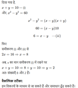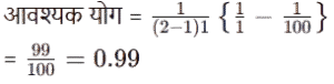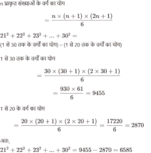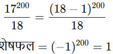 संख्या पद्धति-रेलवे गणित Part- 8Total Questions: 501. दी गई संख्याओं की श्रृंखला का मान ज्ञात कीजिए। [RRB NTPC 11/03/2021 (Evening)]25 + 26 + …… + 75 = ?(a) 2525 (b) 2750 (c) 2550(d) 2755Correct Answer: (c) 2550Solution:1 से 75 प्राकृत संख्याओं का योग तथा 1 से 24 प्राकृत संख्याओं का योग फिर, 25+26+…+75=2850−300=25502. निम्नलिखित का मान ज्ञात कीजिए। [RRB NTPC 12/03/2021 (Morning)](a) 0.95 (b) 0.92 (c) 0.99(d) 0.29Correct Answer: (c) 0.99Solution: शार्ट ट्रिक्स :- जहाँ, n= हर में पदों की संख्याd=पदों के बीच का अंतर k = पहले हर का पहला पद औरL = अंतिम भाजक का अंतिम पद। 3. तीन संख्याओं का योग 253 है। यदि पहली संख्या दूसरी की दुगुनी हो और तीसरी संख्या पहली की एक तिहाई हो, तो दूसरी संख्या है: [RRB NTPC 12/03/2021 (Evening)](a) 84 (b) 48 (c) 69(d) 54Correct Answer: (c) 69Solution:माना संख्याएँ x, y और z हैंx, y और z के बीच का अनुपात = 6 : 3 : 2तब, 6 + 3 + 2 = 11 इकाई11 इकाई = 253 → 1 इकाई = 23इसलिए, दूसरी संख्या = y = 3 इकाई = 694. 21² + 22² + 23² + … … + 30² का मान ज्ञात करे [RRB NTPC 12/03/2021 (Evening)](a) 6855 (b) 6585(c) 5865 (d) 8565Correct Answer: (b) 6585Solution:5. दो संख्याओं का योग 10 है और उनके वर्गों का अंतर 60 है। दो संख्याएँ क्या हैं? [RRB NTPC 12/03/2021 (Evening)](a) 5 और 5 (b) 8 और 2(c) 7 और 3 (d) 6 और 4Correct Answer: (b) 8 और 2Solution:6. सबसे छोटा धनात्मक पूर्णांक इस प्रकार ज्ञात कीजिए कि उसका वर्ग उस पूर्णांक के 5 गुने से -6 से अधिक हो। [RRB NTPC 12/03/2021 (Evening)](a) 3 (b) 4 (c) 5 (d) 2Correct Answer: (d) 2Solution:माना, न्यूनतम +ve पूर्णांक = x x²=5x−6⇒x²−5x+6=0 x=3 और 2 अतः न्यूनतम +ve पूर्णांक = 27. यदि संख्या 2564$4, 4 से पूर्णतः विभाज्य है, तो निम्न में से कौन सा अंक $ के स्थान पर नहीं हो सकता है? [RRB NTPC 13/03/2021 (Morning)](a) 2 (b) 6 (c) 8 (d) 5Correct Answer: (d) 5Solution:कोई भी संख्या 4 से विभाज्य होती है यदि संख्या के अंतिम 2 अंक 4 से विभाज्य हों।यदि हम $ के स्थान पर 5 डालते हैं, तो अंतिम 2-अंक 54 होगा और 4 से विभाज्य नहीं होगा।8. 17²⁰⁰ को 18 से विभाजित करने पर शेषफल क्या होगा? [RRB NTPC 14/03/2021 (Evening)](a) 1 (b) 16 (c) 2 (d) 17Correct Answer: (a) 1 Solution:9. सबसे बड़ी और सबसे छोटी एक अंकों वाली अभाज्य संख्याओं में क्या अंतर है? [RRB NTPC 19/03/2021 (Morning)](a) 8 (b) 6 (c) 5(d) 7Correct Answer: (c) 5Solution:सबसे छोटी अभाज्य संख्या = 2,सबसे बड़ी अभाज्य संख्या = 7सबसे बड़े और सबसे छोटी एकल अंकों वाली अभाज्य संख्याओं के बीच का अंतर = 7−2=510. वह छोटी से छोटी संख्या जिसे 0.000845 से घटाने पर एक पूर्ण वर्ग संख्या प्राप्त हो। [RRB NTPC 19/03/2021 (Morning)](a) 0.000004 (b) 0.000001 (c) 0.000006 (d) 0.000005Correct Answer: (a) 0.000004 Solution: 29²=8410.000845 - 0.000004 = 0.0008410.000841 एक पूर्ण वर्ग संख्या है।√0.000841=0.029Submit Quiz12345Next »