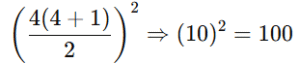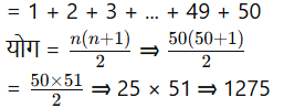 संख्या पद्धति-रेलवे गणित Part- 8Total Questions: 5041. 5 से बड़ी लेकिन 18 से कम सभी अभाज्य संख्याओं के योग का एक तिहाई, वर्ग है: [RRB NTPC 08/04/2021 (Morning)](a) 5 (b) 4(c) 3 (d) 6Correct Answer: (b) 4Solution:5 से बड़ी और 18 से छोटी सभी अभाज्य संख्याएँ हैं = 7, 11, 13, 17योग = 7 + 11 + 13 + 17 = 48 48 का एक तिहाई = 1616, 4 का वर्ग है।42. प्रथम चार प्राकृत संख्याओं के घनों का योग क्या है? [RRB NTPC 23/07/2021 (Morning)](a) 1000 (b) 84 (c) 96 (d) 100Correct Answer: (d) 100Solution:प्रथम 4 प्राकृत संख्याओं के घनों का योग = 43. 101³ का मान क्या है? [RRB NTPC 23/07/2021 (Morning)](a) 1020301 (b) 1030201 (c) 1030301(d) 1020201Correct Answer: (c) 1030301Solution:101³ = 10,30,30144. संख्या 12288 के कितने गुणनखण्ड हैं? [RRB NTPC 23/07/2021 (Morning)](a) 22 (b) 24 (c) 28 (d) 26Correct Answer: (d) 26Solution:12288 का अभाज्य गुणनखंडन12288 = 2¹² × 3गुणनखंडन की संख्या = (12 + 1) × (1 + 1)= 13 × 2 = 2645. 3/2, -3/2, 11/4, 5/2 में सबसे बड़ी संख्या है: [RRB NTPC 23/07/2021 (Evening)](a) -3/2(b) 11/4(c) 5/2(d) 3/2Correct Answer: (b) 11/4Solution:3/2, -3/2, 11/4, 5/2 हर को बराबर करने पर,-6/4, 6/4, 11/4, 10/4अब अंश के आधार पर तुलना करें। अंश बड़ा होगा तो भिन्न बड़ा होगासबसे बड़ी संख्या = 11/446. तीन अंकों की सबसे छोटी अभाज्य संख्या है: [RRB NTPC 23/07/2021 (Evening)](a) 109 (b) 103 (c) 101(d) 107Correct Answer: (c) 101Solution:3 अंकों की सबसे छोटी अभाज्य संख्या = 10147. 7 5/ और 3/4 के बीच कौन से दो भिन्न आ सकते हैं? [RRB NTPC 23/07/2021 (Evening)](a) 8/11, 11/15(b) 2/3, 5/6(c) 7/9, 8/9(d) 1/2, 2,5Correct Answer: (a) 8/11, 11/15Solution:5/7 = 0.71 और 3/4 = 0.758/11 = 0.72, 11/15 = 0.7348. निम्नलिखित में से कौन सह-अभाज्य हैं? [RRB NTPC 23/07/2021 (Evening)](a) 21, 56 (b) 28, 81(c) 36, 20 (d) 12, 27Correct Answer: (b) 28, 81Solution:28 और 81 का HCF = 149. (−3)×(−7)=(−7)×(−3) ______ प्रमेय है। [RRB NTPC 23/07/2021 (Evening)](a) संव्युत गुण (b) वितरण (c) क्रमचयी गुण(d) सहयोगीCorrect Answer: (c) क्रमचयी गुणSolution:(-3) × (-7) = (-7) × (-3)क्रमचयी गुण है।50. 1+2+3+...+49+50 का योग क्या है? [RRB NTPC 24/07/2021 (Morning)](a) 2550 (b) 2525 (c) 1275(d) 5050Correct Answer: (c) 1275Solution:दिया गया क्रम Submit Quiz« Previous12345