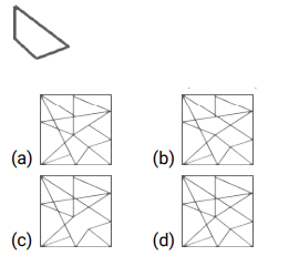 सन्निहित आकृति (भाग-III)Total Questions: 5031. उस विकल्प का चयन करें जिसमें दी गई आकृति सन्निहित है [ रोटेशन ( घुमाने ) की अनुमति नहीं है]। [SSC MTS 12/09/2023 (3rd Shift)](a)(b)(c)(d)Correct Answer: (d)Solution:32. उस विकल्प का चयन करें जिसमें दी गई आकृति सन्निहित है [ रोटेशन ( घुमाने ) की अनुमति नहीं है]। [SSC MTS 14/09/2023 (3rd Shift)](a)(b)(c)(d)Correct Answer: (c)Solution:33. उस विकल्प का चयन करें जिसमें दी गई आकृति सन्निहित है [ रोटेशन ( घुमाने ) की अनुमति नहीं है]। [SSC CGL 14/07/2023 (1st shift)]उस विकल्प आकृति का चयन करें जो दी गई आकृति में सन्निहित है। ( आकृति को घुमाने की अनुमति नहीं है)। (a)(b)(c)(d)Correct Answer: (b)Solution:34. उस विकल्प का चयन करें जिसमें दी गई आकृति सन्निहित है [ रोटेशन ( घुमाने ) की अनुमति नहीं है]। [SSC CGL 14/07/2023 (4th shift)](a)(b)(c)(d)Correct Answer: (d)Solution:35. उस विकल्प का चयन करें जिसमें दी गई आकृति सन्निहित है [ रोटेशन ( घुमाने ) की अनुमति नहीं है]। [SSC CGL 14/07/2023 (4th shift)]उस विकल्प आकृति का चयन कीजिए जो दी गई आकृति में सन्निहित है (घूर्णन की अनुमति नहीं है)। (a)(b)(c)(d)Correct Answer: (c)Solution:36. उस विकल्प का चयन करें जिसमें दी गई आकृति सन्निहित है [ रोटेशन ( घुमाने ) की अनुमति नहीं है]। [SSC CGL 17/07/2023 (3rd shift)]उस विकल्प आकृति का चयन करें जो दी गई आकृति में सन्निहित है (घूमाने की अनुमति नहीं है)। (a)(b)(c)(d)Correct Answer: (c)Solution:37. उस विकल्प का चयन करें जिसमें दी गई आकृति सन्निहित है [ रोटेशन ( घुमाने ) की अनुमति नहीं है]। [SSC CGL 18/07/2023 (2nd shift)]उस विकल्प आकृति का चयन कीजिए जो दी गई आकृति में सन्निहित है ( घूर्णन की अनुमति नहीं है। (a)(b)(c)(d)Correct Answer: (b)Solution:38. उस विकल्प का चयन करें जिसमें दी गई आकृति सन्निहित है [ रोटेशन ( घुमाने ) की अनुमति नहीं है]। [SSC CGL 18/07/2023 (3rd shift)]उस विकल्प आकृति का चयन कीजिए जो दी गई आकृति में सन्निहित है ( घूर्णन की अनुमति नहीं है)। (a)(b)(c)(d)Correct Answer: (b)Solution:39. उस विकल्प का चयन करें जिसमें दी गई आकृति सन्निहित है [ रोटेशन ( घुमाने ) की अनुमति नहीं है]। [SSC CGL 20/07/2023 (1st shift)]उस विकल्प आकृति का चयन कीजिए जो दी गई आकृति में सन्निहित है ( घूर्णन की अनुमति नहीं है)। (a)(b)(c)(d)Correct Answer: (b)Solution:40. उस विकल्प का चयन करें जिसमें दी गई आकृति सन्निहित है [ रोटेशन ( घुमाने ) की अनुमति नहीं है]। [SSC CGL 20/07/2023 (3rd shift)]उस विकल्प आकृति का चयन कीजिए जो दी गई आकृति में सन्निहित है (घूर्णन की अनुमति नहीं है) । (a)(b)(c)(d)Correct Answer: (a)Solution:Submit Quiz« Previous12345Next »