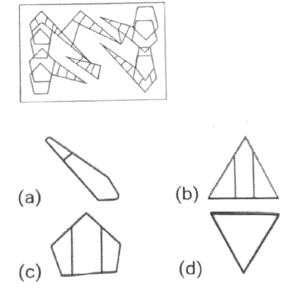 सन्निहित आकृति (भाग-V)Total Questions: 6531. उस विकल्प का चयन करें जिसमें दी गई आकृति सन्निहित है [ रोटेशन ( घुमाने ) की अनुमति नहीं है]। [SSC MTS 07/10/2021 ( Morning )]उस विकल्प आकृति का चयन करें जो दी गई आकृति में उसके भाग के रूप में सन्निहित है (घूर्णन की अनुमति नहीं है)। (a)(b)(c)(d)Correct Answer: (b)Solution:32. उस विकल्प का चयन करें जिसमें दी गई आकृति सन्निहित है [ रोटेशन ( घुमाने ) की अनुमति नहीं है]। [SSC CGL 13/08/2021 (Afternoon)]उस विकल्प आकृति का चयन करें जो दी गई आकृति में उसके भाग के रूप में सन्निहित है (घूर्णन की अनुमति नहीं है)। (a)(b)(c)(d)Correct Answer: (a)Solution:33. उस विकल्प का चयन करें जिसमें दी गई आकृति सन्निहित है [ रोटेशन ( घुमाने ) की अनुमति नहीं है]। [SSC CGL 16/08/2021 (Afternoon)](a)(b)(c)(d)Correct Answer: (a)Solution:34. उस विकल्प का चयन करें जिसमें दी गई आकृति सन्निहित है [ रोटेशन ( घुमाने ) की अनुमति नहीं है]। [SSC CGL 17/08/2021 (Morning)](a)(b)(c)(d)Correct Answer: (a)Solution:35. उस विकल्प का चयन करें जिसमें दी गई आकृति सन्निहित है [ रोटेशन ( घुमाने ) की अनुमति नहीं है]। [SSC CGL 17/08/2021 (Evening)]उस विकल्प आकृति का चयन करें जो दी गई आकृति में उसके भाग के रूप में सन्निहित है (घूर्णन की अनुमति नहीं है)। (a)(b)(c)(d)Correct Answer: (d)Solution:36. उस विकल्प का चयन करें जिसमें दी गई आकृति सन्निहित है [ रोटेशन ( घुमाने ) की अनुमति नहीं है]। [SSC CGL 20/08/2021 (Afternoon)](a)(b)(c)(d)Correct Answer: (b)Solution:37. उस विकल्प का चयन करें जिसमें दी गई आकृति सन्निहित है [ रोटेशन ( घुमाने ) की अनुमति नहीं है]। [SSC CGL 23/08/2021 (Evening)]उस विकल्प आकृति का चयन करें जो दी गई आकृति में उसके भाग के रूप में सन्निहित है (घूर्णन की अनुमति नहीं है)। (a)(b)(c)(d)Correct Answer: (b)Solution:38. उस विकल्प का चयन करें जिसमें दी गई आकृति सन्निहित है [ रोटेशन ( घुमाने ) की अनुमति नहीं है]। [SSC CGL 24/08/2021 (Evening)](a)(b)(c)(d)Correct Answer: (b)Solution:39. उस विकल्प का चयन करें जिसमें दी गई आकृति सन्निहित है [ रोटेशन ( घुमाने ) की अनुमति नहीं है]। [SSC CHSL 13/04/2021 (Morning)](a)(b)(c)(d)Correct Answer: (a)Solution:40. उस विकल्प का चयन करें जिसमें दी गई आकृति सन्निहित है [ रोटेशन ( घुमाने ) की अनुमति नहीं है]। [SSC CHSL 13/04/2021 (Evening)]उस विकल्प आकृति का चयन करें जो दी गई आकृति में उसके भाग के रूप में सन्निहित है (घूर्णन की अनुमति नहीं है)। (a)(b)(c)(d)Correct Answer: (b)Solution:Submit Quiz« Previous1234567Next »