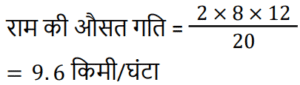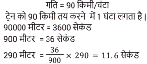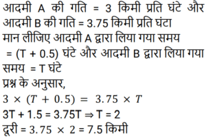 समय , चाल और दूरी Part-4Total Questions: 501. दो व्यक्ति A और B एक ही बिंदु से क्रमशः: 3 Km/h और 4 Km/h की गति से एक यात्रा शुरू करते हैं। यदि वे एक ही गंतव्य पर चलते हैं, तो 6 घंटे के बाद उनके बीच की दूरी क्या होगी? [RRB NTPC 02/02/2021 (Morning)](a) 9 Km(b) 3 Km(c) 4 Km(d) 6 KmCorrect Answer: (d) 6 KmSolution:2. एक व्यक्ति एक स्कूल से एक पार्क तक 20Km/h की गति से यात्रा करता है और 5 km/h की गति से वापस चला जाता है। यदि पूरी यात्रा में 5 घंटे लगे। पार्क से स्कूल की दूरी ज्ञात कीजिए? [RRB NTPC 03/02/2021 (Morning)](a) 40 Km (b) 80 Km (c) 30 Km (d) 20 KmCorrect Answer: (d) 20 KmSolution:3. 110 m लंबी एक ट्रेन 90 km/h की गति से चल रही है। 180 m लंबे पुल को पार करने में ट्रेन को कितना समय लगेगा? [RRB NTPC 03/02/2021 (Evening)](a) 11.6 s (b) 9.6 s (c) 10.6 s (d) 7.6 sCorrect Answer: (a) 11.6 s Solution:4. राम की औसत गति क्या है यदि वह बिंदु X से बिंदु Y तक 8 किमी/घंटा की गति से जाता है और बिंदु Y से बिंदु X पर 12 km/h की गति से लौटता है? [RRB NTPC 03/02/2021 (Evening)](a) 8.6 किमी/घंटा (b) 10.6 किमी/घंटा (c) 9.6 किमी/घंटा(d) 15.6 किमी/घंटाCorrect Answer: (c) 9.6 किमी/घंटाSolution:5. एक कुत्ते ने एक बिल्ली को 280 मीटर की दूरी पर देखा। बिल्ली एक बार में 10 km/h की गति से दौड़ी और कुत्ता भी 24 km/h की गति से उसे पकड़ने के लिए दौड़ा। कुत्ता बिल्ली को पकड़ने में कितना समय लेगा? [RRB NTPC 04/02/2021 (Evening)](a) 1.3 मिनट (b) 1.2 मिनट(c) 1.4 मिनट (d) 1.5 मिनटCorrect Answer: (b) 1.2 मिनटSolution:6. एक आदमी 11 घंटे में एक यात्रा पूरी करता है। वह यात्रा के पहले भाग को 25 किमी/घंटा की गति से और दूसरे भाग को 30 किमी/घंटा की गति से यात्रा करता है। यात्रा की कुल दूरी ज्ञात कीजिए। [RRB NTPC 04/02/2021 (Evening)](a) 300 km (b) 265 km (c) 250 km (d) 285 kmCorrect Answer: (a) 300 km Solution:7. दो आदमी एक निश्चित गंतव्य के लिए एक साथ चलना शुरू करते हैं, एक 3 Km/h की गति से और दूसरा 3.75 Km/h की गति से। बाद वाला पहले वाले से आधे घंटे पहले आता है। दूरी कितनी है? [RRB NTPC 09/02/2021 (Morning)](a) 6.7 m (b) 0.7 km (c) 7.5 km(d) 7.0 kmCorrect Answer: (c) 7.5 kmSolution:8. दो महिलाएं एक स्थान से क्रमशः: 6 km/h और 8 km/h की गति से चलती हैं। पहली महिला दूरी तय करने में दूसरी महिला से 40 मिनट अधिक लेती है। दूरी ज्ञात कीजिए। [RRB NTPC 09/02/2021 (Evening)](a) 14 km (b) 16 km(c) 12 km (d) 10 kmCorrect Answer: (b) 16 kmSolution:9. एक साइकिल एक निश्चित दूरी को तय करने में 13 घंटे का समय लेती है। वह दूरी के पहले भाग को 7 km/h की गति से और दूसरे भाग को 6 km/h की गति से तय करता है। दूरी ज्ञात कीजिए। [RRB NTPC 09/02/2021 (Evening)](a) 84 km (b) 82 km (c) 80 km (d) 86 kmCorrect Answer: (a) 84 km Solution:10. एक बैलगाड़ी के पहिये का व्यास 14/11m है। यह पहिया प्रति मिनट दस पूर्ण चक्कर लगाता है। गाड़ी की गति किमी/घंटा में क्या होगी? [RRB NTPC 10/02/2021 (Morning)](a) 4.8 (b) 8.8 (c) 9.6 (d) 2.4Correct Answer: (d) 2.4Solution:Submit Quiz12345Next »