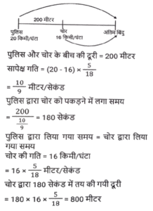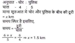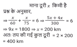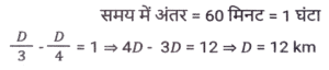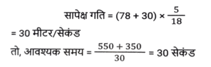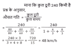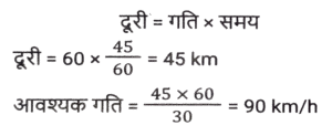 समय ,चाल और दूरी (Part-III)Total Questions: 501. यदि D, 60 km/h की चाल से गाड़ी चलाता है तो किसी गंतव्य पर पहुंचने के लिए उसे 45 मिनट का समय लगता है। कुछ अत्यावश्यकता के कारण, उसे 30 मिनट में गंतव्य तक पहुंचना है। km/h में उसकी चाल क्या होनी चाहिए? [SSC CHSL 05/07/2024 (2nd Shift)](a) 90(b) 75(c) 60(d) 80Correct Answer: (a) 90Solution:2. एक मोटरसाइकिल चालक पहले एक घंटे में 90 km/hr की चाल से और अगले दो घंटों में 120 km/hr की चाल से अपनी मोटरसाइकिल चलाता है। चालक की औसत चाल ज्ञात कीजिए। [SSC CHSL 05/07/2024 (3rd Shift)](a) 115 km/hr(b) 120 km/hr(c) 105 km/hr(d) 110 km/hrCorrect Answer: (d) 110 km/hrSolution:3. 550 मीटर लंबी एक ट्रेन 78 km/h की चाल से चल रही है। 30 km/h की चाल से विपरीत दिशा में चल रही 350 मीटर लंबी एक दूसरी ट्रेन को पार करने में इसे कितने सेकंड का समय लगेगा? [SSC CHSL 05/07/2024 (3rd Shift) ](a) 50 सेकंड(b) 20 सेकंड(c) 40 सेकंड(d) 30 सेकंडCorrect Answer: (d) 30 सेकंडSolution:4. एक व्यक्ति अपनी यात्रा की कुल दूरी को तीन बराबर भागों में बांटता है और तीनों भागों को क्रमशः 80 km/h, 60 km/h और 30 km/h की चाल से तय करने का निर्णय लेता है। यात्रा के दौरान औसत चाल क्या है? [SSC CHSL 05/07/2024 (4th Shift)](a) 49 km/h(b) 40 km/h(c) 45 km/h(d) 48 km/hCorrect Answer: (d) 48 km/hSolution:5. एक व्यक्ति एक स्थान से दूसरे स्थान की यात्रा 60 km/hr की चाल से और वापसी की यात्रा 75 km/hr की चाल से तय करता है। यदि यात्रा में लिया गया कुल समय 6 घंटे है, तो तय की गई कुल दूरी ज्ञात कीजिए। [SSC CHSL 05/07/2024 (4th Shift)](a) 250 km(b) 240 km(c) 400 km(d) 300 kmCorrect Answer: (c) 400 kmSolution:6. यात्रा के एक हिस्से को 68 km/h की चाल से 22.5 मिनट में और शेष हिस्से को 72 km/h की चाल से 12 मिनट में तय किया जाता है। यात्रा की कुल दूरी कितनी है (निकटतम पूर्णांक तक) ? [SSC CHSL 09/07/2024 (2nd Shift)](a) 35 km(b) 42 km(c) 38 km(d) 40 kmCorrect Answer: (d) 40 kmSolution:7. यदि तान्या 6 km/h की चाल से चलती है, तो उसकी रेलगाड़ी 2 मिनट से छूट जाती है। हालांकि, यदि वह 8 km/h की चाल से चलती है, तो वह रेलगाड़ी के आगमन से 3 मिनट पहले स्टेशन पर पहुंच जाती है। तान्या द्वारा स्टेशन तक पहुंचने के लिए तय की गई दूरी कितनी है? [SSC CHSL 09/07/2024 (3rd Shift)](a) 2.5 km(b) 2.75 km(c) 3 km(d) 2 kmCorrect Answer: (d) 2 kmSolution:8. एक चोर की चाल एक पुलिसकर्मी की चाल की 4/5 गुना है। पुलिसकर्मी द्वारा 30 मिनट में पकड़े जाने से पहले चोर 6 km की दूरी तय करता है। शुरुआत में पुलिसकर्मी और चोर के बीच km में दूरी कितनी थी? [SSC CHSL 09/07/2024 (4th Shift)](a) 1.5(b) 1.2(c) 1.0(d) 0.8Correct Answer: (a) 1.5Solution:9. एक व्यक्ति 3 km/h की चाल से चलने पर अपने गंतव्य पर 30 मिनट देरी से पहुंचता है, और यदि उसकी चाल 4 km/h हो जाती है, तो वह समय से 30 मिनट पहले पहुंच जाता है। उसके आरंभिक बिंदु से उसके गंतव्य की दूरी ज्ञात कीजिए। [SSC CHSL 10/07/2024 (1st Shift)](a) 11 km(b) 14 km(c) 12 km(d) 13 kmCorrect Answer: (c) 12 kmSolution:10. एक पुलिसकर्मी को एक चोर का पीछा करने के लिए कहा गया। इससे पहले कि पुलिसकर्मी पीछा करना शुरू करता, उसे ज्ञात होता है कि चोर उससे 200 मीटर आगे था और 16 km/h की चाल से भाग रहा था। पुलिसकर्मी ने 20 km/h की चाल से पीछा करना शुरू किया। पुलिसकर्मी द्वारा पकड़े जाने से पहले चोर कितनी दूर तक भागेगा? [SSC CHSL 10/07/2024 (2nd Shift)](a) 600 m(b) 700 m(c) 800 m(d) 1000 mCorrect Answer: (c) 800 mSolution:Submit