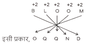 समानता (प्रश्न 351-400) भाग-VIIITotal Questions: 5021. उस विकल्प का चयन करें जो तीसरे शब्द से उसी प्रकार संबंधित है जिस प्रकार दूसरा शब्द पहले शब्द से संबंधित है। [SSC CPO 29/06/2024 (2nd Shift)]कंकोलॉजी : शैल :: पैलेऑटोलॉजी : ?(a) जीवाश्म(b) धातु(c) ग्रह(d) मृदाCorrect Answer: (a) जीवाश्मSolution:जैसे शैलों के अध्ययन को कन्कोलॉजी (Concology) कहा जाता है, उसी प्रकार जीवाश्मों के अध्ययन को पेलियोन्टोलॉजी (Paleontology) कहा जाता है।22. उस समुच्चय का चयन करें जिसकी संख्याएं उसी तरह से संबंधित हैं जिस तरह निम्नलिखित समुच्चयों की संख्याएं संबंधित हैं। [SSC CPO 29/06/2024 (2nd Shift)](84, 28, 4)(147, 49, 7)(a) (241, 77, 11)(b) (231, 77, 11)(c) (231, 67, 11)(d) (231, 77, 13)Correct Answer: (b) (231, 77, 11)Solution:तर्क:- (पहली संख्या दूसरी संख्या) + 14 = तीसरी संख्या(84, 28, 4) :- (84 - 28) × 14 ⇒ (56) ÷ 14 = 4(147, 49, 7) :- (147 - 49) × 14 ⇒ (98) ÷ 14 = 7इसी प्रकार,(231, 77, 11) :- (231 - 77) × 14 ⇒ (154) ÷ 14 = 1123. उस समुच्चय का चयन करें जिसमें दी गई संख्याएँ आपस में उसी प्रकार संबंधित हैं, जिस प्रकार प्रश्न में दिए गए समुच्चय की संख्याएँ आपस में संबंधित हैं। [SSC CPO 29/06/2024 (2nd Shift)](16, 20, 80)(12, 16, 64)(a) (20, 25, 100)(b) (11,15,70)(c) (19, 23, 82)(d) (18 ,22, 88)Correct Answer: (d) (18 ,22, 88)Solution:तर्क :- (दूसरी संख्या - पहली संख्या) × दूसरी संख्या = तीसरी संख्या(16, 20, 80) :- (20 - 16) × 20 ⇒ (4) × 20 = 80(12, 16, 64) :- (16 - 12) × 16 ⇒ (4) × 16 = 64इसी प्रकार(18, 22, 88) :- (22-18) × 22 ⇒ (4) × 22 = 8824. उस विकल्प का चयन करें, जो पाँचवें अक्षर-समूह से उसी प्रकार संबंधित है, जिस प्रकार दूसरा अक्षर-समूह पहले अक्षर-समूह से और चौथा अक्षर- समूह तीसरे अक्षर-समूह से संबंधित है। [SSC CPO 29/06/2024 (3rd Shift)]ABIDE : GFKDC :: CHARM OTCJE ::BLOOM : ?(a) OQQND(b) OPQND(c) DNQQO(d) OQQDNCorrect Answer: (a) OQQNDSolution:25. एक निश्चित तर्क का अनुसरण करते हुए 824, 329 से संबंधित है। उसी तर्क का अनुसरण करते हुए, 271, 505 से संबंधित है। उसी तर्क का उपयोग करते हुए निम्नलिखित में से कौन सी संख्या 408 से संबंधित है? [SSC CPO 29/06/2024 (3rd Shift)](a) 325(b) 822(c) 612(d) 434Correct Answer: (b) 822Solution:तर्क:- (पहली संख्या और दूसरी संख्या के अंकों का योग बराबर है)(824, 329) :- (8 + 2 + 4) = 14 ; (3 + 2 + 9) = 14(271, 505) :- (2+7 + 1) = 10 ; (5 + 0 + 5) = 10इसी प्रकार,(408, ?) :- (4 + 0 + 8) = 12 ; (8 + 2 + 2) = 1226. एक निश्चित तर्क का अनुसरण करते हुए 24, 8 से संबंधित है। उसी तर्क का अनुसरण करते हुए, 54, 20 से संबंधित है। उसी तर्क का उपयोग करते हुए निम्नलिखित में से कौन सी संख्या 18 से संबंधित है? [SSC CPO 29/06/2024 (3rd Shift)](a) 12(b) 26(c) 63(d) 42Correct Answer: (c) 63Solution:तर्क:- (पहली संख्या के अंक का गुणन) = दूसरी संख्या(24, 8) :- (2 × 4) = 8(54, 20) :- (5 × 4) = 20इसी प्रकार,(63, 18) :- (6 × 3) = 1827. उस समुच्चय का चयन करें जिसकी संख्याएं उसी तरह से संबंधित हैं जिस तरह निम्नलिखित समुच्चयों की संख्याएं संबंधित हैं। [SSC CPO 29/06/2024 (3rd Shift)](112, 56, 8)(196, 98, 14)(a) (294, 149, 21)(b) (294, 147, 21)(c) (294, 147, 19)(d) (292, 147, 21)Correct Answer: (b) (294, 147, 21)Solution:तर्क:- (पहली संख्या - दूसरी संख्या) = 7 = तीसरी संख्या(112, 56, 8) :- (112 - 56) ÷ 7 ⇒ (56) ÷ 7 = 8(196, 98, 14) :- (196 - 98) ÷ 7 ⇒ (98) ÷ 7 = 14इसी प्रकार,(294, 147, 21) :- (294 - 147) ÷ 7 ⇒ (147) ÷ 7 = 2128. उस विकल्प का चयन करें जो तीसरे शब्द से उसी प्रकार संबंधित है जैसे दूसरा शब्द पहले शब्द से संबंधित है। [Matriculation Level 20/06/2024 (Shift - 1)]अपराधी : जेल :: एस्किमो : ?(a) कॉटेज(b) महल(c) झ