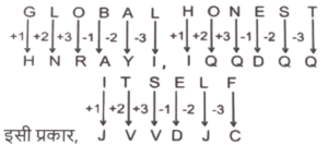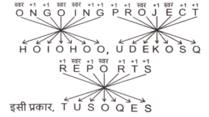 समानता (प्रश्न 351-400) भाग-VIIITotal Questions: 5031. उस विकल्प का चयन करें जो तीसरे शब्द से उसी प्रकार संबंधित है जैसे दूसरा शब्द पहले शब्द से संबंधित है। (शब्दों को सार्थक हिन्दी शब्दों के रूप में माना जाना चाहिए और शब्द में अक्षरों की संख्या/व्यंजनों/स्वरों की संख्या के आधार पर एक-दूसरे से संबंधित नहीं होना चाहिए।) [Matriculation Level 20/06/2024 (Shift - 1)]शर्ट : पतलून :: जूते : ?(a) मोज़े(b) चमड़ा(c) सैंडल(d) पोलिशCorrect Answer: (a) मोज़ेSolution:जैसे शर्ट और पतलून जोड़ी हैं, वैसे ही जूते और मोज़े जोड़ी होते हैं।32. उस विकल्प का चयन करें, जो पाँचवें अक्षर-समूह से उसी तरह संबंधित है, जैसे दूसरा अक्षर-समूह पहले अक्षर-समूह से और चौथा अक्षर-समूह तीसरे अक्षर-समूह से संबंधित है। [Matriculation Level 20/06/2024 (Shift - 1) ]POWER : QOYEU :: FIRST : GITSW ::BEING : ?(a) CFJNK(c) DFKNK(b) CEJNK(d) CEKNJCorrect Answer: (d) CEKNJSolution:33. उस विकल्प का चयन कीजिए जो पांचवीं संख्या से उसी प्रकार संबंधित है जिस प्रकार चौथी संख्या तीसरी संख्या से और दूसरी संख्या पहली संख्या से संबंधित है। [Matriculation Level 21/06/2024 (Shift - 4)]4867 : 9574 :: 635 : 473 :: 573 : ?(a) 746(b) 618(c) 592(d) 374Correct Answer: (b) 618Solution:तर्क : पहली संख्या के अंक का योग = दूसरी संख्या के अंक का योग(4867 : 9574) :- (4 + 8 + 6 + 7) = (9 + 5 + 7 + 4) = 25(635 : 473) :- (6 + 3 + 5) = (4 + 7 + 3) = 14इसी प्रकार,(573 : 618) :- (5 + 7 + 8) = (6 + 1 + 8) = 1534. उस विकल्प का चयन करें जो पांचवें अक्षर-समूह से उसी प्रकार संबंधित है जिस प्रकार दूसरा अक्षर- समूह पहले अक्षर-समूह से संबंधित है और चौथा अक्षर-समूह तीसरे अक्षर-समूह से संबंधित है। [Matriculation Level 24/06/2024 (Shift - 4)]GLOBAL : HNRAYI :: HONEST : IQQDQQ :: ITSELF : ?(a) JVUDJC(b) JVVDKC(c) JVVEJC(d) JVVDJCCorrect Answer: (d) JVVDJCSolution:35. उस विकल्प का चयन कीजिए जो पांचवीं संख्या से उसी प्रकार संबंधित है जिस प्रकार चौथी संख्या तीसरी संख्या से और दूसरी संख्या पहली संख्या से संबंधित है। [Matriculation Level 26/06/2024 (Shift -1)]37 : 43 :: 23 : 31 :: 17 : ?(a) 19(b) 23(c) 21(d) 25Correct Answer: (b) 23Solution:तर्क : दो अभाज्य संख्याओं के बीच एक अभाज्य संख्या का अंतर(37:43) :- 37 → (41) → 43(23:31) :- 23→ (29) → 31इसी प्रकार,(17 : ?) :- 17 → (19) → 2336. उस विकल्प का चयन करें जो तीसरे शब्द से उसी प्रकार संबंधित है जैसे दूसरा शब्द पहले शब्द से संबंधित है। [Matriculation Level 26/06/2024 (Shift -1)]गाय : बाड़ा :: खरगोश : ?(a) शूकरशाला(b) खंदक/बिल(c) खरगोश(d) मांदCorrect Answer: (d) मांदSolution:जैसे गाय बाड़ा में रहती है वैसे ही खरगोश मांद में रहता है।37. उस विकल्प का चयन करें जो तीसरे शब्द से उसी प्रकार संबंधित है जिस प्रकार दूसरा शब्द पहले शब्द से संबंधित है। [Higher Secondary 20/06/2024 (Shift - 2)]सांप : काटना :: मधुमक्खी : ?(a) शहद(b) डंक मारना(c) छत्ता(d) भनभनानाCorrect Answer: (b) डंक मारनाSolution:जैसे सांप का संबंध काटने से है उसी प्रकार मधुमक्खी का संबंध डंक मारना से है।38. उस विकल्प का चयन करें जो पांचवें अक्षर समूह से उसी प्रकार संबंधित है जिस प्रकार दूसरा अक्षर- समूह पहले अक्षर समूह से संबंधित है और चौथा अक्षर समूह तीसरे अक्षर -समूह से संबंधित है। [Higher Secondary 21/06/2024 (Shift -2)]ONGOING : HOIOHOO :: PROJECT :UDEKOSQ :: REPORTS : ?(a) TUSPQFS(b) TUSPQES(c) TUSOQES(d) TUSOQFSCorrect Answer: (c) 