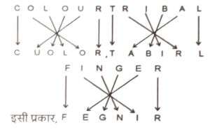 समानता (प्रश्न 351-400) भाग-VIIITotal Questions: 5041. उस विकल्प का चयन कीजिए, जिसका पाँचवें अक्षर-समूह से ठीक वही संबंध है, जो संबंध दूसरे अक्षर- समूह का पहले अक्षर-समूह से और वही संबंध चौथे अक्षर-समूह का तीसरे अक्षर-समूह से है। [Higher Secondary 25/06/2024 (Shift - 2)]PLEASED : ELPADES : HOWEVER : WOHEREV :: IMAGINE : ?(a) MAIGEIN(b) AMIGENI(c) AIMGEIN(d) MAIGNEICorrect Answer: (b) AMIGENISolution:42. उस विकल्प का चयन कीजिए जो तीसरे शब्द से उसी प्रकार संबंधित है जिस प्रकार दूसरा शब्द पहले शब्द से संबंधित है। [Higher Secondary 25/06/2024 (Shift - 4)]आँख : आँसू :: त्वचा : ?(a) कोमल(b) नरम(c) पसीना(d) शरीरCorrect Answer: (c) पसीनाSolution:जिस प्रकार आंखों से आंसू निकलते होते हैं, उसी प्रकार त्वचा से पसीना निकलता है।43. उस विकल्प का चयन करें जो तीसरे शब्द से उसी प्रकार संबंधित है जिस प्रकार दूसरा शब्द पहले शब्द से संबंधित है। [Higher Secondary 25/06/2024 (Shift - 4)]गाय : बैल :: घोड़ी : ?(a) घोड़ा(b) सूअर(c) मेमना(d) हिरणCorrect Answer: (a) घोड़ाSolution:जिस प्रकार गाय का विपरीत बैल उसी प्रकार घोड़ी का विपरीत घोड़ा होता है।44. उस विकल्प का चयन करें जो तीसरे शब्द से उसी प्रकार संबंधित है जिस प्रकार दूसरा शब्द पहले शब्द से संबंधित है। [Higher Secondary 26/06/2024 (Shift - 2)]ताजमहल : भारत :: एफिल टॉवर : ?(a) फ्रांस(b) जापान(c) इंग्लैंड(d) रूसCorrect Answer: (a) फ्रांसSolution:जैसे ताज महल, भारत में है, वैसे ही एफिल टावर, फ्रांस में है।45. उस विकल्प का चयन कीजिए, जिसका पाँचवें अक्षर-समूह से ठीक वही संबंध है, जो संबंध दूसरे अक्षर- समूह का पहले अक्षर-समूह से और वही संबंध चौथे अक्षर-समूह का तीसरे अक्षर-समूह से है। [Higher Secondary 26/06/2024 (Shift - 2)]COLOUR : CUOLOR :: TRIBAL : TABIRL ::FINGER : ?(a) FEGINR(b) FEGNIR(c) FNIEGR(d) FGEINRCorrect Answer: (b) FEGNIRSolution:46. उस विकल्प का चयन करें जो तीसरे शब्द से उसी प्रकार संबंधित है जिस प्रकार दूसरा शब्द पहले शब्द से संबंधित है। [Graduate Level 20/06/2024 (Shift - 3)]उत्तरी अमेरिका : मेक्सिको :: दक्षिण अमेरिका : ?(a) फ्रैंकफर्ट(b) जमैका(c) वेनेजुएला(d) क्रैनबेरीCorrect Answer: (c) वेनेजुएलाSolution:जैसे मेक्सिको उत्तरी अमेरिका का देश है वैसे ही वेनेजुएला दक्षिण अमेरिका का देश है।47. उस विकल्प का चयन करें जो तीसरे शब्द से उसी प्रकार संबंधित है जिस प्रकार दूसरा शब्द, पहले शब्द से संबंधित है। [Graduate Level 20/06/2024 (Shift - 3)]धातु : अयस्क :: रबड़ : ?(a) फाइबर(b) लैटेक्स(c) संस्फुर(d) जूटCorrect Answer: (b) लैटेक्सSolution:जैसे अयस्क वह चट्टान है जिससे धातु निकाली जाती है उसी प्रकार लेटेक्स वह पदार्थ है जिससे रबड़ निकाला जाता है।48. उस विकल्प का चयन करें, जो पाँचवे अक्षर-गुच्छ से उसी प्रकार संबंधित है, जैसे दूसरा अक्षर-गुच्छ पहले अक्षर-गुच्छ से और चौथा अक्षर-गुच्छ तीसरे अक्षर-गुच्छ से संबंधित है। [Graduate Level 20/06/2024 (Shift - 3)]SPEAK : ROIEJ :: THEIR : SGIOQ :: BEING : ?(a) AIOMF(b) AIONF(c) BIONF(d) BOINFCorrect Answer: (a) AIOMFSolution:तर्क :- व्यंजन 1 आता है और स्वर के बाद उनका अगला स्वर आता है।49. उस विकल्प का चयन करें जो तीसरे शब्द से उसी प्रकार संबंधित है जिस प्रकार दूसरा शब्द पहले शब्द से संबंधित है। [Graduate Level 21