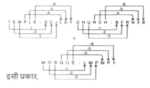 समानता (प्रश्न 401-450) भाग-IXTotal Questions: 5021. उस विकल्प का चयन करें, जो पांचवें अक्षर-समूह से उसी प्रकार संबंधित है, जिस प्रकार दूसरा अक्षर-समूह पहले अक्षर-समूह से संबंधित है, और चौथा अक्षर-समूह तीसरे अक्षर-समूह से संबंधित है। [SSC CPO 03/10/2023 (1st Shift)]TEMPLE : SCJLGY :: CHURCH : BFRNXB :: MOSQUE : ?(a) LMPYMP(b) LMPYPM(c) LPYMPM(d) LMPMPYCorrect Answer: (d) LMPMPYSolution:22. उस समुच्चय का चयन कीजिए जिसमें संख्याएँ उसी प्रकार संबंधित हैं जिस प्रकार निम्नलिखित समुच्चयों की संख्याएँ संबंधित हैं। [SSC CPO 03/10/2023 (1st Shift)](264, 462)(132, 330)(a) (211,340)(b) (188,378)(c) (282,496)(d) (386, 584)Correct Answer: (d) (386, 584)Solution:तर्क :- (दूसरी संख्या - पहली संख्या) = 198(264, 462) :- (462 - 264)) = 198(132, 330) :- (330 - 132)) = 198(386, 584) :- (584 - 386)) = 19823. उस समुच्चय का चयन कीजिए जिसमें संख्याएँ उसी प्रकार संबंधित हैं जिस प्रकार निम्नलिखित समुच्चयों की संख्याएँ संबंधित हैं। [SSC CPO 03/10/2023 (2nd Shift)](13, 104, 16)(9,63,14)(a) (23, 204, 26)(b) (12,85, 15)(c) (10, 92, 17)(d) (8,60, 15)Correct Answer: (d) (8,60, 15)Solution:तर्क (पहली संख्या × तीसरी संख्या) ÷ 2 = दूसरी संख्या(13, 104, 16) :- (13 × 16) ÷ 2 ⇒ 208 ÷ 2 = 104(9, 63, 14) :- (9 × 14) ÷ 2 ⇒ 126 ÷ 2 = 63इसी प्रकार(8, 60, 15) :- (8 × 15) ÷ 2 ⇒ 120 ÷ 2 = 6024. उस समुच्चय का चयन कीजिए जिसमें संख्याएँ आपस में उसी प्रकार संबंधित हैं जिस प्रकार निम्नलिखित समुच्चयों की संख्याएँ आपस में संबंधित हैं। [SSC CPO 03/10/2023 (2nd Shift)](15, 21, 66)(9, 17, 44)(a) (7, 9, 86)(b) (2, 4, 12)(c) (11, 13, 35)(d) (5, 37, 52)Correct Answer: (d) (5, 37, 52)Solution:तर्क :- (तीसरी संख्या संख्या) : 3 = पहली संख्या दूसरी(15, 21, 66) :- (66 - 21) ÷ 3 ⇒ (45) ÷ 3 = 15(9,1/,44) :- (44-17) ÷ 3 ⇒ (27) ÷ 3 = 9(5,3/,52) :- (52-37) ÷ 3 ⇒ (15) ÷ 3 = 525. उस समुच्चय का चयन कीजिए जिसमें संख्याएँ एक-दूसरे से उसी प्रकार संबंधित है जिस प्रकार निम्नलिखित समुच्चय की संख्याएँ आपस में संबंधित हैं। [SSC CPO 03/10/2023 (3rd Shift)](5, 4, 405)(7, 3, 500)(a) (4, 1, 125)(b) (5, 8, 789)(c) (4, 5, 850)(d) (3, 2, 145)Correct Answer: (a) (4, 1, 125)Solution:तर्क : (पहली संख्या)² × 5 = तीसरी संख्या संख्या + दूसरी(5, 4, 405) :- (5 + 4)² × 5 ⇒ 81 × 5= 405(7, 3, 500) :- (7 + 3)² × 5 ⇒ 100 × 5= 500इसी प्रकार,(4, 1, 125) :- (4 + 1)² × 5 ⇒ 25 × 5= 12526. उस समुच्चय का चयन करें जिसमें संख्याएँ उसी प्रकार संबंधित है, जिस प्रकार दिए गए समुच्चय की संख्याएँ हैं। [SSC CPO 03/10/2023 (3rd Shift)](6, 8, 106)(7, 11, 177)(a) (7, 9, 136)(b) (9, 8, 154)(c) (5, 9, 101)(d) (8, 7, 119)Correct Answer: (b) (9, 8, 154)Solution:तर्क :- (पहली संख्या)² + (दूसरी संख्या)² + पहली संख्या = तीसरी संख्या(6, 8, 106) :- 6² + 8² + (6)⇒ 36 + 64 + (6) = 106(7, 11, 177) :- 7² + 11² + (7)⇒ 49 + 121 + (7) = 177इसी प्रकार,(9, 8, 154) :- 9² + 8² + (9)⇒ 81 + 64 + (9) = 15427. उस विकल्प का चयन करें, जो तीसरे शब्द से उसी प्रकार संबंधित है, जिस प्रकार दूसरा शब्द पहले शब्द से संबंधित है [SSC CPO 03/10/2023 (3rd Shift)]बिल्ली (Cat): पंजा (Paw) :: कौवा (Crow): ?(a) चोंच (Beak)(b) पंजा (Claw)(c) हॉफ (Hoff)(d) पंख (Wings)Correct Answer: (b) पंजा (Claw)Solution:जैसे बिल्ली के पैर को पंजा (Paw) कहते हैं उसी प्रकार कौवे के पैर को पंजा (Claw) कहते हैं।28. उस विकल्प का चयन कीजिये जो तीसरे पद से उसी प्रकार संबंधित है जैसे दूसरा पद पहले पद से और छठा पद पांचवें पद से संबंधित है। [SSC CPO 04/10/2023 (1st Shift)]142 : 108 :: 185 : ? :: 169 : 135(a) 151(b) 148(c) 157(d) 162Correct Answer: (a) 151Solution:तर्क :- (पहली संख्या - दूसरी संख्या) = 34(142 : 108) :- 142 - 108 = 34(169 : 135) :- 169 - 135 = 34इसी प्रकार,(185 : 151) :- 185 - 151 = 3429. उस विकल्प का चयन कीजिए, जो तीसरे शब