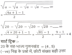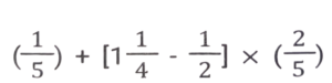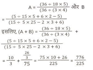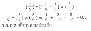 सरलीकरण (भाग-III)Total Questions: 5041. इसका मान निम्न में से किसके बीच में स्थित है ? [SSS MTS 04/05/2023 (Morning)](a) 2.1 and 2.4(b) 0.2 and 0.6(c) 1.5 and 1.8(d) 0.8 and 1.2Correct Answer: (b) 0.2 and 0.6Solution:42. 0.5 +0.55 + 0.555 + 0.5555 का मान ज्ञात कीजिये: [SSC MTS 09/05/2023 (Evening)](a) 1.4405(b) 1.0555(c) 1.5555(d) 2.1605Correct Answer: (d) 2.1605Solution:43. मान ज्ञात कीजिए। [SSC MTS 16/05/2023 (Morning)](a) 14(b) 15(c) 16(d) 0.93Correct Answer: (b) 15Solution:44. इसका मान क्या है ? [SSC MTS 13/06/2023 (Morning)](a) 0.63(b) 0.73(c) 0.83(d) 0.93Correct Answer: (c) 0.83Solution:45. इसका मान क्या है ? [SSC MTS 19/06/2023 (Afternoon)](a) 55/36(b) 55/39(c) 13/46(d) 44/13Correct Answer: (a) 55/36Solution:46. इसका मान क्या है ? [SSC CHSL 09/03/2023 (1st Shift)](a) 31/127(b) 32/127(c) 28/125(d) 25/123Correct Answer: (d) 25/123Solution:47. (A + B) का मान क्या है ? [SSC CHSL 09/03/2023 (4th Shift)](a) 776/225(b) 424/225(c) 772/225(d) 401/225Correct Answer: (a) 776/225Solution:48. दी गई भिन्नों में से सबसे बड़ी और सबसे छोटी भिन्न का अंतर क्या है? [SSC CHSL 13/03/2023 (1st Shift)](a) 17/56(b) 19/56(c) 1/7(d) 23/56Correct Answer: (b) 19/56Solution:49. इसका मान क्या है ? [SSC CHSL 15/03/2023 (1st Shift)](a) 1(b) 5(c) 4(d) 6Correct Answer: (a) 1Solution:50. दिए गए व्यंजक का मान ज्ञात कीजिए। [SSC CGL Tier II (03/03/2023)](a) 4(b) 6(c) 5(d) 2Correct Answer: (a) 4Solution:Submit Quiz« Previous12345