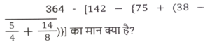 सरलीकरण (भाग-IV)Total Questions: 3531. मान ज्ञात करे ? [SSC MTS 22/10/2021 (Evening)](a) 4/7(b) 3/7(c) 3/5(d) 3/4Correct Answer: (d) 3/4Solution:32. मान ज्ञात करे। [SSC CGL (16/08/2021 (Afternoon)](a) 9(b) 6(c) 7(d) 8Correct Answer: (a) 9Solution:33. निम्नलिखित व्यंजक को सरल बनाएं: [SSC CGL 24/08/2021 (Evening)](a) 14/75(b) -70/27(c) -14/15(d) 32/75Correct Answer: (c) -14/15Solution:34. निम्नलिखित व्यंजक को सरल कीजिए। [SSC CHSL 12/04/2021 (Morning)](2x - 3y)³ - 18xy (2x - 3y)(a) 8x³ - 27y³ - 36x²y -54xy²(b) 8x³ - 27y³ - 72x²y + 108xy²(c) 8x³ - 27y³(d) 8x³ + 108xy² - 72x²yCorrect Answer: (b) 8x³ - 27y³ - 72x²y + 108xy²Solution:35. इसका मान क्या है? [SSC CHSL 11/08/2021 (Evening)](a) 332(b) 330(c) 331(d) 334Correct Answer: (a) 332Solution:Submit Quiz« Previous1234