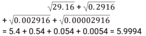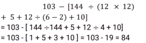 सरलीकरण Part-10Total Questions: 5021. 5/2 और 2/5 का योग कितना है ? [RRB NTPC 31/01/2021 (Morning)](a) 20/7 (b) 7/7 (c) 10/7 (d) 29/10Correct Answer: (d) 29/10Solution:22. ज्ञात कीजिये ? [RRB NTPC 01/02/2021 (Morning)](a) 32/33 (b) 39/43(c) 36/56 (d) 29/23Correct Answer: (b) 39/43Solution:23. निम्नलिखित व्यंजक का मान क्या होगा? [RRB NTPC 01/02/2021 (Evening) ](a) 24(b) - 42(c) - 24(d) 42Correct Answer: (b) - 42Solution:24. मान ज्ञात कीजिये ? [RRB NTPC 01/02/2021 (Evening)](a) 2 - 3√2 (b) 3√2 - 2(c) 3√2 (d) 3√2 + 2Correct Answer: (b) 3√2 - 2Solution:25. 1/3 + 4/3 और 3/4 का योग ज्ञात कीजिये ? [RRB NTPC 01/02/2021 (Evening)](a) 2 (b) 29/12(c) 27/12 (d) 26/12Correct Answer: (b) 29/12Solution:26. यदि √2916 = 54 तो निम्नलिखित का मान क्या होगा ? [RRB NTPC 01/02/2021 (Evening)]√29.16 + √0.2916 + √0.002916 + √0.00002916(a) 6.00 (b) 5.9994(c) 5.90 (d) 5.999Correct Answer: (b) 5.9994Solution:27. निम्नलिखित व्यंजक का मान क्या होगा? [RRB NTPC 02/02/2021 (Morning)]20 - [15 - {4 - (8 - 6 ÷ 3)}](a) 8 (b) 4 (c) 5 (d) 6Correct Answer: (b) 4 Solution:28. निम्नलिखित समीकरण का मान क्या है? [RRB NTPC 02/02/2021 (Morning)](a) 3 (b) 2(c) 4 (d) 14Correct Answer: (b) 2Solution:29. निम्नलिखित समीकरण का मान क्या है? [RRB NTPC 02/02/2021 (Morning)]103 - [144 ÷ (12 × 12) + 5 + 12 ÷ (6 - 2) + 10](a) 86 (b) 96 (c) 85 (d) 84Correct Answer: (d) 84Solution:30. का मान है: [RRB NTPC 02/02/2021 (Morning)](a) 8 (b) 5(c) 3 (d) 3.6Correct Answer: (b) 5Solution:Submit Quiz« Previous12345Next »