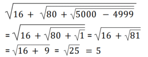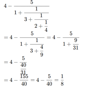 सरलीकरण Part-10Total Questions: 5041. भिन्न के समतुल्य है। [RRB NTPC 04/02/2021 (Evening)](a) 537/990 (b) 572/990 (c) 32/99 (d) 527/990Correct Answer: (d) 527/990Solution:42. 18 - [6 - {4 - (8 - (6 + 3))}] का मान ज्ञात कीजिये [RRB NTPC 05/02/2021 (Morning)](a) 3 (b) 11 (c) 6 (d) 17Correct Answer: (d) 17Solution:43. का सरलीकरण क्या होगा ? [RRB NTPC 09/02/2021 (Morning)](a) 2 (b) 0.09(c) 3.195 (d) 2.199Correct Answer: (b) 0.09Solution:44. मान क्या होगा ? [RRB NTPC 11/02/2021 (Morning)](a) 1 (b) 5(c) 50 (d) 25Correct Answer: (b) 5Solution:45. निम्न का मान ज्ञात कीजिये [RRB NTPC 11/02/2021 (Morning)](a) 1/8 (b) 1/4 (c) 2/9 (d) 8/3Correct Answer: (a) 1/8 Solution:46. मान ज्ञात कीजिये ? [RRB NTPC 11/02/2021 (Evening)](a) 1/12 (b) 1/6 (c) -1/6 (d) 1/3Correct Answer: (a) 1/12 Solution:47. निम्न का मान ज्ञात कीजिये ? [RRB NTPC 12/02/2021 (Morning)](a) 0 (b) 220 (c) 2020(d) 2220Correct Answer: (c) 2020Solution:48. मान ज्ञात कीजिये [RRB NTPC 15/02/2021 (Evening)](a) 4/5 (b) 5/4(c) 5/6 (d) 3/4Correct Answer: (b) 5/4Solution:49. निम्नलिखित को हल कीजिये [RRB NTPC 16/02/2021 (Morning)](a) 12 (b) 2 (c) 11(d) 10Correct Answer: (c) 11Solution:50. मान ज्ञात कीजिये ? [RRB NTPC 16/02/2021 (Morning)](a) 3.63 (b) 3.60 (c) 3.83 (d) 3.84Correct Answer: (d) 3.84Solution:Submit Quiz« Previous12345