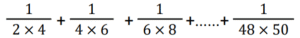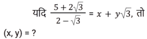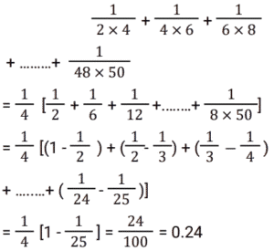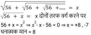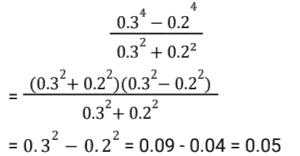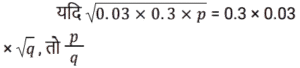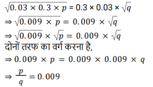 सरलीकरण Part-11Total Questions: 5021. यदि √15 × 27 × x = 180 तो x का मान क्या होगा ? [RRB NTPC 23/02/2021 (Morning)](a) 70 (b) 50 (c) 80(d) 60Correct Answer: (c) 80Solution:22. मान ज्ञात कीजिये ? [RRB NTPC 27/02/2021 (Morning)](a) 0.09(b) 0.009(c) 0.0009(d) 0.9Correct Answer: (b) 0.009Solution:23. मान ज्ञात कीजिये ? [RRB NTPC 27/02/2021 (Morning)](a) 0.05 (b) 0.15 (c) 0.51 (d) 0.5Correct Answer: (a) 0.05 Solution:24. निम्न का मान ज्ञात कीजिये ? [ RRB NTPC 27/02/2021 (Evening) ](a) 0.48(b) 0.42(c) 0.46(d) 0.24Correct Answer: (d) 0.24Solution:25. यदि 0.17 ÷ p² = 17 तो p का मान ज्ञात कीजिये ? [RRB NTPC 27/02/2021 (Evening)](a) 0.001 (b) 1 (c) 0.1(d) 0.01Correct Answer: (c) 0.1Solution:26. मान ज्ञात कीजिये ? [RRB NTPC 01/03/2021 (Morning)](a) 2 (b) 4 (c) 6 (d) 8Correct Answer: (a) 2 Solution:27. मान ज्ञात कीजिये ? [ RRB NTPC 01/03/2021 (Morning) ](a) (4,9)(b) (2,3)(c) (9,16)(d) (16,9)Correct Answer: (d) (16,9)Solution:28. मान ज्ञात कीजिये ? [ RRB NTPC 01/03/2021 (Evening) ](a)(b)(c)(d)Correct Answer: (b)Solution:29. x का मान ज्ञात कीजिये ? [ RRB NTPC 01/03/2021 (Evening) ](a) x = 127(b) x = 117(c) x = 119(d) x = 121Correct Answer: (c) x = 119Solution:30. निम्नलिखित वर्गमूल का धनात्मक मान ज्ञात कीजिए: [ RRB NTPC 02/03/2021 (Morning) ](a) 4(b) 8(c) 12(d) 56Correct Answer: (b) 8Solution:Submit Quiz« Previous12345Next »