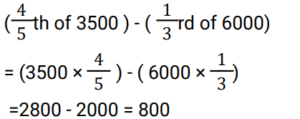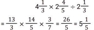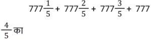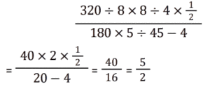 सरलीकरण Part-11Total Questions: 5031. 3500 का 4/5th, 6000 के 1/3rd से कितना अधिक है ? [RRB NTPC 02/03/2021 (Morning)](a) 2800(b) 2000(c) 1800(d) 800Correct Answer: (d) 800Solution:32. निम्नलिखित का मान ज्ञात कीजिये [ RRB NTPC 02/03/2021 (Evening) ](a)(b)(c)(d)Correct Answer: (b)Solution:33. निम्नलिखित को हल कीजिये [RRB NTPC 03/03/2021 (Morning)](a)(b)(c)(d)Correct Answer: (b)Solution:34. यदि 65 × 65 = 4225, तो 6.5 × 6.5 का मान क्या होगा ? [ RRB NTPC 03/03/2021 (Morning) ](a) 42.25(b) 42025(c) 422.5(d) 0.004225Correct Answer: (a) 42.25Solution:65 × 65 = 4225 तब , 6.5 × 6.5 = 42.2535. मान ज्ञात कीजिये ? [RRB NTPC 03/03/2021 (Morning)](a) 3110 (b) 3018 (c) 3000 (d) 3108Correct Answer: (a) 3110 Solution:36. सरलीकरण कीजिये [RRB NTPC 03/03/2021 (Evening)](a) 2/5 (b) 10 (c) 5/2(d) 5/8Correct Answer: (c) 5/2Solution:37. सरल करे: 9 + (45 ÷ 9) - 8 × (-4) [ RRB NTPC 03/03/2021 (Evening) ](a) 46(b) -171(c) 38(d) 8Correct Answer: (a) 46Solution:9 + (45 ÷ 9) - 8 × (-4) = 9 + 5 + 32 = 4638. मान ज्ञात करें ? [RRB NTPC 04/03/2021 (Morning)](a)(b)(c)(d)Correct Answer: (b)Solution:39. 27 × 4.15 + 30.8 ÷ 22 का मान है: [RRB NTPC 04/03/2021 (Morning)](a) 113.45(b) 110.25(c) 126.05(d) 149.85Correct Answer: (a) 113.45Solution:40. यदि (3ˣ)(3ʸ) = 9 और (25ˣ)(5ʸ) = 625, तो (x, y) क्या है ? [ RRB NTPC 04/03/2021 (Morning) ](a) (2, 4)(b) (2, 0)(c) (3, -5)(d) (1, 2)Correct Answer: (b) (2, 0)Solution:Submit Quiz« Previous12345Next »