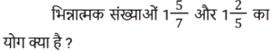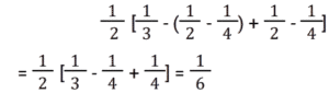 सरलीकरण Part-14Total Questions: 5011. योग क्या है? [RRB NTPC 24/07/2021 (Morning)](a)(b)(c)(d)Correct Answer: (a)Solution:12. (2 + √5)⁴ − (2 − √5)⁴ का मान क्या है? [RRB NTPC 24/07/2021 (Morning)](a) 144√5 (b) 120√5 (c) 96√5 (d) 12√5Correct Answer: (a) 144√5 Solution:13. निम्नलिखित को हल करें। [ RRB NTPC 24/07/2021 (Evening) ](a) 1/2 (b) 0 (c) 1/4 (d) 1/6Correct Answer: (d) 1/6Solution:14. −2/3 प्राप्त करने के लिए −5/7 में कौन सी संख्या जोड़नी चाहिए? [RRB NTPC 24/07/2021 (Evening)](a) 10/21 (b) −7/21 (c) 7/21 (d) 1/21Correct Answer: (d) 1/21Solution:15. समीकरण में x का मान है। [RRB NTPC 26/07/2021 (Morning)](a) 7/27 (b) 10/27 (c) 9/27 (d) 1/3Correct Answer: (a) 7/27 Solution:16. √(576/625) का मान ज्ञात करो [RRB NTPC 26/07/2021 (Evening)](a) 0.9 (b) 0.99 (c) 0.96(d) 10Correct Answer: (c) 0.96Solution:17. निम्नलिखित को हल करें: [ RRB NTPC 26/07/2021 (Evening) ](a)(b)(c)(d)Correct Answer: (c)Solution:18. −5 {−5 − (−5 − 2) − 5} का मान ज्ञात करें [ RRB NTPC 31/07/2021 (Morning) ](a) 18(b) -18(c) -15(d) 15Correct Answer: (d) 15Solution:19. (½ + ⅓ + ⅕) में 3 प्राप्त करने के लिए क्या जोड़ा जाना चाहिए? [ RRB NTPC 31/07/2021 (Morning) ](a) 59/10 (b) 54/30 (c) 59/30(d) 3/10Correct Answer: (c) 59/30Solution:20. 26/33 प्राप्त करने के लिए −5/11 में किस संख्या को जोड़ा जाना चाहिए? [RRB NTPC 31/07/2021 (Morning)](a) 11/33 (b) 21/33 (c) 41/33(d) 33/33Correct Answer: (c) 41/33Solution:Submit Quiz« Previous12345Next »