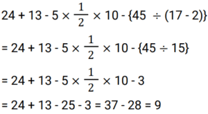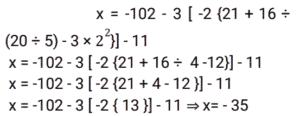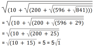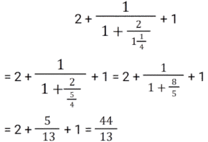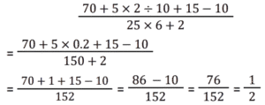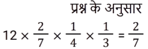 सरलीकरण Part-13Total Questions: 5031. यदि x = -102 - 3[-2{21 + 16 ÷ (20 ÷ 5) - 3 × 2²}] - 11, तो x का मान क्या है ? [RRB NTPC 01/04/2021 (Evening)](a) 17 (b) 35 (c) 24 (d) -35Correct Answer: (d) -35Solution:32. मान ज्ञात कीजिए [RRB NTPC 01/04/2021 (Evening)](a) 44/13 (b) 45/13 (c) 42/13 (d) 43/13Correct Answer: (a) 44/13 Solution:33. भिन्न 4/7, 5/6, 2/3 और 7/8 का आरोही क्रम क्या है ? [RRB NTPC 01/04/2021 (Evening)](a) 2/3 < 4/7 < 5/6 < 7/8(b) 4/7 < 5/6 < 2/3 < 7/8(c) 2/3 < 5/6 < 4/7 < 7/8(d) 4/7 < 2/3 < 5/6 < 7/8Correct Answer: (a) 2/3 < 4/7 < 5/6 < 7/8Solution:34. निम्नलिखित को हल करें :- [ RRB NTPC 03/04/2021 (Morning) ]1498 x 1498 =__________.(a) 22,56,004(b) 22,44,004(c) 22,44,000(d) 2,25,600Correct Answer: (b) 22,44,004Solution:1498 x 1498 = 22,44,00435. निम्नलिखित में से किस भिन्न का दशमलव प्रसार समाप्त है ? [ RRB NTPC 03/04/2021 (Evening) ](a) 104/111 (b) 19/90 (c) 15/16(d) 11/6Correct Answer: (c) 15/16Solution:36. 24 + 13 - 5 × ½ × 10 - {45 ÷ 17 - 2)} का मान है: [ RRB NTPC 03/04/2021 (Evening) ](a) 9 (b) -7 (c) 18 (d) 11Correct Answer: (a) 9 Solution:37. संख्या 0.13̅ p/q के रूप में है : [RRB NTPC 06/04/2021 (Morning)](a) 99/13 (b) 39/99 (c) 13/99(d) 31/99Correct Answer: (c) 13/99Solution:38. का मान है : [RRB NTPC 06/04/2021 (Morning)](a) 5√3 (b) 5√2 (c) 5√5 (d) 5√1Correct Answer: (d) 5√1Solution:39. 12 के दो सातवें के एक चौथाई का एक तिहाई है : [RRB NTPC 06/04/2021 (Evening)](a) 32/7 (b) 2/7(c) 7/2 (d) 14Correct Answer: (b) 2/7Solution:40. निम्नलिखित को हल करें : [RRB NTPC 06/04/2021 (Evening)](a) 19/50 (b) 1/2(c) 53/114 (d) 5/18Correct Answer: (b) 1/2Solution:Submit Quiz« Previous12345Next »