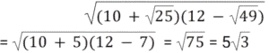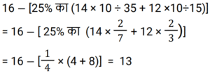 सरलीकरण Part-15Total Questions: 5021. (0.1² – 0.0252² ) ÷ (0.1 – 0.025) = _______. [ ALP Tier II 23/01/2019 (Morning) ](a) 0.25(b) 0.625(c) 0.325(d) 0.125Correct Answer: (d) 0.125Solution:22. तो x का मान ______ है। [ ALP Tier II 23/01/2019 (Morning) ](d) 3/4(a) 5/7(b) 5/4(c) 3/7Correct Answer: (d) 3/4Solution:23. निम्नलिखित को हल कीजिए। [ ALP Tier II 23/01/2019 (Afternoon) ](a) 0.9 (b) 0.6 (c) 0.8(d) 1.2Correct Answer: (c) 0.8Solution:24. तो x का मान______ है [ ALP Tier II 23/01/2019 (Afternoon) ](a) 1.25/8(b) -5/14(c) -25/8(d) 5/14Correct Answer: (c) -25/8Solution:25. दिए गए व्यंजक का मान ज्ञात कीजिए: 16 - (25% का (14 × 10 ÷ 35+ 12 × 10 ÷ 15)) [ALP Tier II 23/01/2019 (Afternoon)](a) 9 (b) 13(c) 7 (d) 11Correct Answer: (b) 13Solution:26. (0.12 × 0.12 × 0.12) × (1.32 × 1.32 ×1.32)/(0.52 × 0.52) का मान होगा; [ ALP Tier II 08/02/2019 (Morning) ](a) 0.187 (b) 0.0187 (c) 0.0147(d) 0.147Correct Answer: (c) 0.0147Solution:27. –7 (2x + 4y) – 2 (x – 2y) का मान होगा: [ALP Tier II 08/02/2019 (Morning)](a) -4(2x+3y) (b) -8(2x+3y)(c) -8(2x-3y) (d) -3(2x+3y)Correct Answer: (b) -8(2x+3y)Solution:– 7 (2x + 4y) – 2 (x – 2y) = -16x 24y = 8(2x + 3y)28. अज्ञात (?) संख्या बताएं: [ ALP Tier II 08/02/2019 (Morning) ](a) 4.2(b) 3.4(c) 4.4(d) 3.2Correct Answer: (c) 4.4Solution:29. (10 + √25) (12 – √49) का वर्गमूल होगा: [ALP Tier II 08/02/2019 (Morning)](a) 4√3 (b) 5√3(c) 3√3 (d) 2√3Correct Answer: (b) 5√3Solution:30. यदि x = 15, y = 20 और z = 10 तो (5x - 15) / (y + z) का मान ______ के बराबर होगा: [ALP Tier II 08/02/2019 (Morning)](a) 2 (b) 3 (c) 4 (d) 6Correct Answer: (a) 2 Solution:Submit Quiz« Previous12345Next »