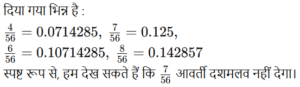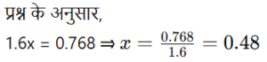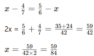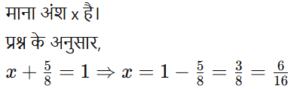 सरलीकरण Part-16Total Questions: 5011. निम्न हल करें [RRB ALP 09/08/2018 (Afternoon)](a) -10.5(b) 10.5(c) -12(d) 12Correct Answer: (d) 12Solution:12. नीचे दी गई भिन्नों में से किस में 5/8 जोड़ने पर 1 बन जाता है? [RRB ALP 09/08/2018 (Afternoon)](a) 5/2(b) 6/16(c) 6/3(d) 6/24Correct Answer: (b) 6/16Solution:13. निम्न हल करें, [RRB ALP 09/08/2018 (Evening) ](a) 24(b) 22(c) 21(d) 0Correct Answer: (a) 24Solution:14. निम्न में से वह कौन सी भिन्न है जो आवर्ती दशमलव नहीं देंगे? [RRB ALP 09/08/2018 (Evening)](b) 7/56(a) 4/56(c) 6/56(d) 8/56Correct Answer: (b) 7/56Solution:15. 3249 का वर्गमूल कितना है: [RRB ALP 09/08/2018 (Evening)](a) 63(b) 57(c) 59(d) 67Correct Answer: (b) 57Solution:16. निम्न हल करें: [RRB ALP 10/08/2018 (Morning)](−4){19−(−2)×(−8)}=?(a) 140(b) -140(c) -12(d) 12Correct Answer: (c) -12Solution:( - 4){19 - ( - 2) × ( - 8)} ⇒ (−4){19−16}⇒−4×3=−1217. निम्नलिखित में से कौन सी संख्या एक पूर्ण वर्ग है? [RRB ALP 10/08/2018 (Morning)](a) 333(b) 327(c) 192(d) 441Correct Answer: (d) 441Solution:18. दो दशमलों का गुणनफल 0.768 है। यदि एक दशमलव संख्या 1.6 है, तो दूसरी संख्या ज्ञात कीजिए। [RRB ALP 10/08/2018 (Morning)](a) 0.47(b) 0.48(c) 0.37(d) 0.42Correct Answer: (b) 0.48Solution:माना अभिषेक दशमलव x है 19. दो संख्याओं का गुणनफल 0.432 है। यदि एक संख्या 1.6 हो तो दूसरी संख्या क्या है? [RRB ALP 10/08/2018 (Morning)](a) 2.7(b) 0.27(c) 27(d) 0.027Correct Answer: (b) 0.27Solution:मान लीजिए कि दूसरी संख्या x हैप्रश्न के अनुसार, 20. वह भिन्न ज्ञात कीजिए जो से 4/7 उतना ही अधिक है जितना वह 5/6 से कम है। [RRB ALP 10/08/2018 (Morning)](a) 59/85(b) 58/84(c) 59/84(d) 84/59Correct Answer: (c) 59/84Solution:माना अभिषेक अंश x हैप्रश्न के अनुसार, Submit Quiz« Previous12345Next »