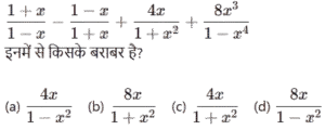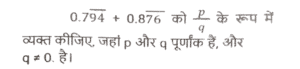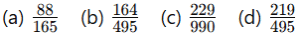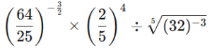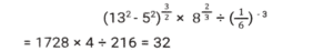 सरलीकरण Part-3Total Questions: 5041. सरलीकृत मान ज्ञात कीजिए [Group D 01/09/2022 (Evening)](a) 10 (b) 1 (c) 1000 (d) 100Correct Answer: (d) 100Solution:42. (34² - 16²) का धनात्मक वर्गमूल ज्ञात कीजिए। [Group D 02/09/2022 (Morning)](a) 60 (b) 40 (c) 30(d) 50Correct Answer: (c) 30Solution:43. दिए गए व्यंजक को सरल कीजिए: [Group D 02/09/2022 (Morning)](a) 12 (b) 24 (c) 32(d) 16Correct Answer: (c) 32Solution:44. मान ज्ञात कीजिए। [Group D 02/09/2022 (Morning)] (a)(b)(c)(d)Correct Answer: (c)Solution:45. व्यंजक [Group D 02/09/2022 (Afternoon)](a)(b)(c)(d)Correct Answer: (d)Solution:46. √74529 का मान ज्ञात कीजिए। [Group D 02/09/2022 (Evening)](a) 239 (b) 243 (c) 273(d) 259Correct Answer: (c) 273Solution:√74529= √3 × 3 × 7 × 7 × 13 × 13 = 27347. मान ज्ञात कीजिए। [Group D 02/09/2022 (Evening)](a) 69 (b) 59 (c) 49 (d) 39Correct Answer: (d) 39Solution:a = 5,फिर √(4a² − 4a + 1) + 6a= √100 − 20 + 1 + 30 = 9 + 30 = 3948. मान ज्ञात कीजिएः [Group D 05/09/2022 (Morning)](a)(b)(c)(d)Correct Answer: (b)Solution:(64/25)⁻³/² × (2/5)⁴ ÷ ⁵√(32)⁻³= (8/5)²×⁻³/² × 16/625 ÷ 2⁵×⁻³/²= 125/512 × 16/625 × 8 = 1/2049. मान ज्ञात कीजिए : [Group D 05/09/2022 (Afternoon)](a)(b)(c)(d)Correct Answer: (b)Solution:50. 0.987−0.756 को p/q के रूप में व्यक्त कीजिए, जहाँ 𝑝 और 𝑞 पूर्णांक हैं, और 𝑞 ≠ 0 है। [Group D 05/09/2022 (Evening)](a)(b)(c)(d)Correct Answer: (c)Solution:Submit Quiz« Previous12345