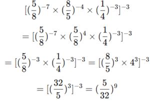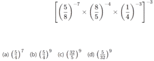 सरलीकरण Part-4Total Questions: 5041. 5ⁿ⁺² =3125, तो n का मान ज्ञात कीजिए। [Group D 16/09/2022 (Morning)](a) 5 (b) 4 (c) 3(d) 2Correct Answer: (c) 3Solution:42. मान ज्ञात कीजिए। [Group D 16/09/2022 (Morning)](a) 36 (b) 6(c) 11 (d) 15Correct Answer: (b) 6Solution:43. मान ज्ञात कीजिए। [Group D 16/09/2022 (Afternoon)](a)(b)(c)(d)Correct Answer: (d)Solution:44. (4pq+3q)²−(4pq−3q)² को सरल कीजिए। [Group D 16/09/2022 (Afternoon)](a) 24p²q² (b) 48p²q² (c) 24pq² (d) 48pq²Correct Answer: (d) 48pq²Solution:हम जानते हैं कि 45. मान ज्ञात कीजिए ? [Group D 16/09/2022 (Afternoon)](a) 29 (b) 25 (c) 21 (d) 13Correct Answer: (a) 29 Solution:46. निम्न में से कौन सा विकल्प उस निकटतम लगभग मान को दर्शाता है, जो निम्न समीकरण में प्रश्नचिह्न (?) के स्थान पर आएगा? [Group D 16/09/2022 (Afternoon)]11.96 + 4.96 + 12.16 − 11.89 × 2.04 = ?(a) 7 (b) 9 (c) 13 (d) 5Correct Answer: (d) 5Solution:47. 23/11 को इसके आवर्ती दशमलव रूप में परिवर्तित कीजिए। [Group D 16/09/2022 (Evening)](a)(b)(c)(d)Correct Answer: (b)Solution:48. तो x का मान ज्ञात कीजिए। [Group D 16/09/2022 (Evening)](a) 8 (b) 6 (c) 5 (d) 4Correct Answer: (d) 4Solution:49. (6−3)÷[(9−6)÷{(6−4)÷(2+)}] का मान ज्ञात कीजिए। [Group D 16/09/2022 (Evening)](a) 1/17(b) 13/17(c) 26/17(d) 5/17Correct Answer: (b) 13/17Solution:50. यदि 5ˣ⁺ʸ =125 और 5ˣ⁻ʸ =3125 है, तो Y का मान ज्ञात कीजिए। [Group D 17/09/2022 (Morning)](a) –4 (b) –3 (c) –1(d) –2Correct Answer: (c) –1Solution:Submit Quiz« Previous12345