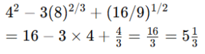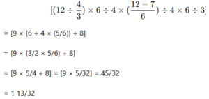सरलीकरण Part-5Total Questions: 5011. √18496 = 136 का उपयोग करते हुए, √184.96-√1.8496 का मान ज्ञात कीजिए। [Group D 18/09/2022 (Morning)](a) 12.24 (b) 18.49 (c) 10 (d) 14.96Correct Answer: (a) 12.24 Solution:√18496 = 136,Then, √184.96 − √1.8496= 13.6 − 1.36 = 12.2412. 250 के 28% के 60% का मान ज्ञात कीजिए। [Group D 18/09/2022 (Afternoon)](a) 42 (b) 56 (c) 22 (d) 68Correct Answer: (a) 42 Solution:250 के 28% का 60%= (60/100) × (28/100) × 250 = 4213. मान ज्ञात कीजिए। [Group D 18/09/2022 (Afternoon)](a)(b)(c)(d)Correct Answer: (a)Solution:4⁻⁵ ÷ 4⁷ × 4⁻⁶ = 4⁽⁻⁵⁻⁷⁻⁶⁾ = 4⁻¹⁸14. मान ज्ञात कीजिए। [Group D 18/09/2022 (Afternoon)](a)(b)(c)(d)Correct Answer: (c)Solution:15. मान ज्ञात कीजिए। [Group D 18/09/2022 (Afternoon)](a)(b)(c)(d)Correct Answer: (d)Solution:16. 2405 ÷ 13 × 6 + 35 का मान निम्नलिखित में से कितना होगा? [Group D 18/09/2022 (Evening)](a) 1035 (b) 1305 (c) 1235 (d) 1145Correct Answer: (d) 1145Solution:2405÷13×6+35=185×6+35=1110+35=114517. 0.26 को उचित भिन्न में बदलिए। [Group D 18/09/2022 (Evening)](a) 5/17(b) 7/33(c) 8/21(d) 4/15Correct Answer: (d) 4/15Solution:18. 16³ - 12³ का मान ज्ञात कीजिए। [Group D 18/09/2022 (Evening)](a) 2388(b) 2368(c) 2378(d) 2358Correct Answer: (b) 2368Solution:19. 6⁰ × 4² × 2⁻⁴ क्या है? [Group D 18/09/2022 (Evening)](a) 2(b) 4(c) 0(d) 1Correct Answer: (d) 1Solution:20. निम्नांकित को सरल कीजिए: [Group D 18/09/2022 (Evening)](a) 0.0125(b) 0.25(c) 0.5(d) 0.125Correct Answer: (d) 0.125Solution:Submit Quiz« Previous12345Next »