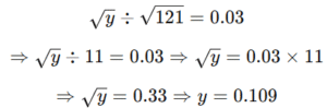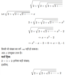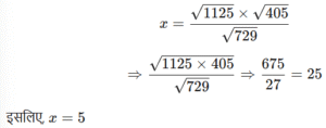 सरलीकरण Part-6Total Questions: 5021. मान ज्ञात कीजिए। [Group D 28/09/2022 (Evening)](a) 9(b) 3(c) 5(d) 25Correct Answer: (c) 5Solution:22. हल कीजिए। [Group D 29/09/2022 (Morning)](a) 0.416̅ (b) 0.417 (c) 0.416 (d) 0.416̅Correct Answer: (a) 0.416̅ Solution:23. हल कीजिए। [Group D 29/09/2022 (Morning)](a) 7 (b) 4 (c) 3 (d) 5Correct Answer: (d) 5Solution:24. दिए गए व्यंजक को सरल कीजिए। [Group D 29/09/2022 (Afternoon)](a) 24 + 25x - 6x² - x³(b) 24 - 25x - 6x² - x³(c) 24 - 25x + 6x² - x³(d) 24 - 25x - 6x² + x³Correct Answer: (b) 24 - 25x - 6x² - x³Solution:25. सरल कीजिए। [Group D 29/09/2022 (Afternoon)](a)(b)(c)(d)Correct Answer: (c)Solution:26. मान ज्ञात कीजिए, [Group D 29/09/2022 (Afternoon)] (a) 1.760 (b) 0.109(c) 0.176 (d) 1.640Correct Answer: (b) 0.109Solution:27. दिए गए व्यंजक को सरल कीजिए। [Group D 29/09/2022 (Evening)](a) 9x² - 9x + 8 (b) 9x² - 9x - 8(c) 9x² + 9x + 8 (d) 9x² + 9x - 8Correct Answer: (b) 9x² - 9x - 8Solution:28. मान ज्ञात कीजिए। [Group D 30/09/2022 (Morning)](a) 1 (b) 6 (c) 3(d) 9Correct Answer: (c) 3Solution:29. हल कीजिए। [Group D 30/09/2022 (Morning)](a) ⁴⁹⁄₂₅ (b) ¹²⁵⁄₃₄₃ (c) ²⁵⁄₄₉ (d) ³⁴³⁄¹²⁵Correct Answer: (a) ⁴⁹⁄₂₅ Solution:30. मान ज्ञात कीजिए। [Group D 30/09/2022 (Morning)](a) 2 (b) 2.5 (c) 1.5 (d) 1.75Correct Answer: (a) 2 Solution:Submit Quiz« Previous12345Next »