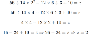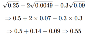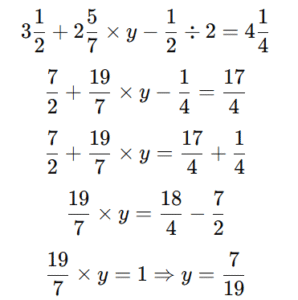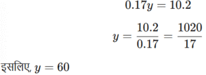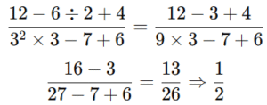 सरलीकरण Part-6Total Questions: 5041. नीचे दिए गए समीकरण में ‘y’ का मान ज्ञात कीजिए। [Group D 07/10/2022 (Afternoon)](a)(b)(c)(d)Correct Answer: (a)Solution:42. निम्नलिखित अभिव्यक्ति को सरल करें [Group D 07/10/2022 (Evening)](a)(b)(c)(d)Correct Answer: (b)Solution:43. निम्नलिखित को सरल कीजिए। [Group D 07/10/2022 (Evening)]−2−[3−3−(4−5)](a) -2 (b) 1 (c) -3 (d) -1Correct Answer: (d) -1Solution:−2−[3−{3−(4−5)}]=−2−[3−4]−2+1=−144. निम्नलिखित को सरल कीजिए। [Group D 11/10/2022 (Morning)]1−2×[−2(2+3)×20÷2](a) -200 (b) -50 (c) −(1/50)(d) 201Correct Answer: (d) 201Solution:1−2×{[−2(2+3)×20]÷2} 1−2×[−100]⇒1+200=20145. यदि 1.345 + 13.45 + 0.1354 + 0.0596 = 11.453 − 0.543 + 𝑘 तो k का मान क्या है? [Group D 11/10/2022 (Afternoon)](a) 4.08 (b) 4.48 (c) 3.06 (d) 3.28Correct Answer: (a) 4.08 Solution:1.345+13.45+0.1354+0.0596=11.453−0.543+k 14.99=10.91+k⇒k=4.08 46. यदि 56 ÷ 14 × 2² − 12 × 6 ÷ 3 + 10 = 𝑧 तो z का मान ज्ञात कीजिए? [Level 6 (09/05/2022) Shift 1](a) 3 (b) 4 (c) 6 (d) 2Correct Answer: (d) 2Solution:47. यदि 0.17𝑦 =10.2y का मान ज्ञात कीजिए? [Level 6 (09/05/2022) Shift 1](a) 0.6 (b) 60(c) 600 (d) 6Correct Answer: (b) 60Solution:48. निम्नलिखित व्यंजक को सरल कीजिए। [Level 6 (09/05/2022) Shift 1](a) 1/2(b) 11/26(c) 13/18(d) 11/18Correct Answer: (a) 1/2Solution:49. निम्न व्यंजक का मान ज्ञात कीजिए। [Level 6 (09/05/2022) Shift 1](a) 39/40(b) 41/40(c) 0(d) 5/8Correct Answer: (b) 41/40Solution:50. व्यंजक को सरल कीजिए: [Level 6 (09/05/2022) Shift 2](a) 0.1 (b) 2.73 (c) 5.05 (d) 0.55Correct Answer: (d) 0.55Solution:Submit Quiz« Previous12345