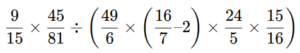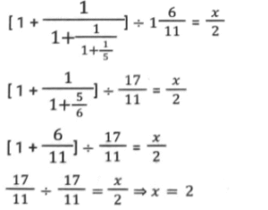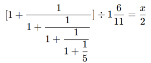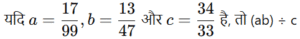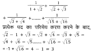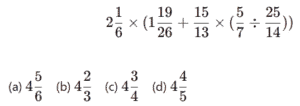 सरलीकरण Part-7Total Questions: 5041. धनात्मक मान ज्ञात कीजिए। [Level 2 (16/06/2022) Shift 3](a) 3 (b) 4 (c) 1 (d) 2Correct Answer: (a) 3 Solution:42. निम्नलिखित व्यंजक को सरल कीजिए: [Level 2 (16/06/2022) Shift 3](a)(b)(c)(d)Correct Answer: (c)Solution:43. निम्नलिखित समीकरण में p के स्थान पर क्या आना चाहिए। [Level 2 (16/06/2022) Shift 3]43240 – 30608 = p × 160(a) 79.85 (b) 78.95(c) 75.89 (d) 78.59Correct Answer: (b) 78.95Solution:44. 484.71 + 285.33 – 827.38 + 73.9 = ? [Level 3 (17/06/2022) Shift 1](a) 16.56 (b) 36.54 (c) 15.78 (d) 19.78Correct Answer: (a) 16.56 Solution:45. मान क्या है? [Level 3 (17/06/2022) Shift 1](a)(b)(c)(d)Correct Answer: (b)Solution:46. मान क्या है? [Level 3 (17/06/2022) Shift 1](a) 6.5 (b) 3.5(c) 7.5 (d) 4.5Correct Answer: (b) 3.5Solution:47. मान ज्ञात कीजिए। [Level 3 (17/06/2022) Shift 2](a) 17/264(b) 13/282(c) 19/289(d) 21/354Correct Answer: (b) 13/282Solution:48. मान क्या है? [Level 3 (17/06/2022) Shift 2](a)(b)(c)(d)Correct Answer: (b)Solution:49. निम्न व्यंजक का मान ज्ञात कीजिए। [Level 3 (17/06/2022) Shift 3](a)(b)(c)(d)Correct Answer: (c)Solution:50. निम्नलिखित समीकरण में x का मान ज्ञात कीजिए: [Level 3 (17/06/2022) Shift 3](a) 2 (b) 1(c) 1/2(d) 2/3Correct Answer: (a) 2 Solution:Submit Quiz« Previous12345