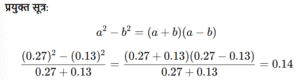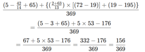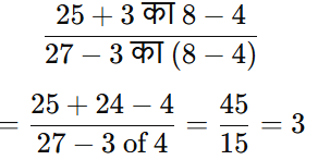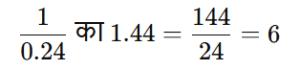 सरलीकरण Part-8Total Questions: 5011. मान ज्ञात कीजिये ? [RRB NTPC 29/12/2020 (Evening)](a) 37 (b) 12 (c) 24 (d) 36Correct Answer: (a) 37 Solution:12. मान ज्ञात कीजिये ? [RRB NTPC 29/12/2020 (Evening)](a) 1/5(b) 7/2(c) 2/3(d) 3/5Correct Answer: (b) 7/2Solution:13. 1.44 के 1/0.24 का मान ज्ञात कीजिये ? [RRB NTPC 29/12/2020 (Evening)](a) 12 (b) 140 (c) 6(d) 166Correct Answer: (c) 6Solution:14. निम्नलिखित को हल कीजिये : [RRB NTPC 30/12/2020 (Morning)]6202.5 + 620.25 + 62.025 + 6.2025 + 0.62025 = ?(a) 6791.59775 (b) 6891.59775(c) 6891.59675 (d) 5892.59775Correct Answer: (b) 6891.59775Solution:15. निम्नलिखित को हल कीजिये : [RRB NTPC 30/12/2020 (Morning)](a) 156/369(b) 224 (c) -24 (d) -25Correct Answer: (a) 156/369Solution:16. 36.1/102.4 के वर्गमूल का क्या मान होगा ? [RRB NTPC 30/12/2020 (Morning)](a) 19/31(b) 19/34(c) 19/32(d) 61/340Correct Answer: (c) 19/32Solution:17. सरलीकृत करें : [RRB NTPC 30/12/2020 (Evening)](a) 4 (b) 37/15(c) 3(d) 5Correct Answer: (c) 3Solution:18. मान किसके समतुल्य है ? [RRB NTPC 04/01/2021 (Morning)](a) 8 (b) 9 (c) 6 (d) 12Correct Answer: (d) 12Solution:19. एक कक्षा में 48 विद्यार्थी हैं। किसी विशेष दिन पर, केवल 3/8 छात्र उपस्थित थे, उसी दिन अनुपस्थित रहने वालों की संख्या कितनी होगी ? [RRB NTPC 04/01/2021 (Morning)](a) 38 (b) 28 (c) 18 (d) 30Correct Answer: (d) 30Solution:20. मान क्या है ? [RRB NTPC 04/01/2021 (Morning)](a) 1.40 (b) 0.40 (c) 0.03 (d) 0.14Correct Answer: (d) 0.14Solution:Submit Quiz« Previous12345Next »