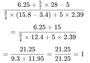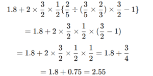 सरलीकरण Part-8Total Questions: 5031. निम्नलिखित समीकरण को सरल कीजिए : [RRB NTPC 07/01/2021 (Evening)](a)(b)(c)(d)Correct Answer: (a)Solution:32. किसके समतुल्य है ? [RRB NTPC 07/01/2021 (Evening)](a)(b)(c)(d)Correct Answer: (b)Solution:33. सरलीकृत कीजिये : [RRB NTPC 07/01/2021 (Evening)](a) 0.2 (b) 1 (c) -1 (d) 2.55Correct Answer: (d) 2.55Solution:34. एक घंटे के 5 मिनट और एक घंटे के 20 सेकंड के अंश के बीच का अंतर कितना है ? [RRB NTPC 08/01/2021 (Morning)](a)(b)(c)(d)Correct Answer: (a)Solution:35. अनुमानित मान ज्ञात कीजिए ? [RRB NTPC 08/01/2021 (Morning)](a) 5.37 (b) 2.00 (c) 2.199 (d) 3.195Correct Answer: (a) 5.37 Solution:36. सरल करें। [RRB NTPC 08/01/2021 (Evening)](a) 3 (b) 1(c) 5 (d) 4Correct Answer: (b) 1Solution:37. निम्नलिखित को हल कीजिये : [RRB NTPC 09/01/2021 (Morning)](a) 7 (b) 229 (c) 252 (d) 200Correct Answer: (a) 7 Solution:38. निम्नलिखित को हल कीजिये : [RRB NTPC 09/01/2021 (Morning)]3.03 + 31.003 + 13.33 + 3.331(a) 3.597 (b) 50.370 (c) 35.97 (d) 50.694Correct Answer: (d) 50.694Solution:3.03+31.003+13.33+3.331=3.030+31.003+13.330+3.331=50.69439. निम्नलिखित को हल कीजिये : [RRB NTPC 09/01/2021 (Morning)](a)(b)(c)(d)Correct Answer: (d)Solution:40. सरलीकृत कीजिये [RRB NTPC 09/01/2021 (Evening)](a) √91(b) 81 (c) 9(d) 3Correct Answer: (c) 9Solution:Submit Quiz« Previous12345Next »