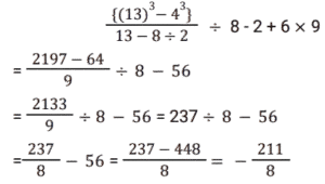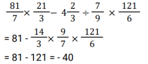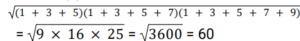 सरलीकरण Part-9Total Questions: 5031. (√2 + √3)(√2 - √3) किसके समतुल्य है? [RRB NTPC 19/01/2021 (Evening)](a) 2 (b) -3 (c) -1(d) 3Correct Answer: (c) -1Solution:दिया गया है,(√2 + √3)(√2 - √3)सूत्र = x² - y² = (x + y)(x - y)(√2 + √3)(√2 - √3) = 2 - 3 = -132. √8 + √18 का मान क्या है? [RRB NTPC 19/01/2021 (Evening)](a) √26 (b) 12 (c) 5√2(d) 2(√2 + √3)Correct Answer: (c) 5√2Solution:√8 + √18 → 2√2 + 3√2 = 5√233. निम्नलिखित को हल कीजिये? [RRB NTPC 20/01/2021 (Evening)](√3 - √2) × (√3 + √2) = ?(a) 2 (b) 3 (c) (√3 + √2) (d) 1Correct Answer: (d) 1Solution:(√3 - √2) × (√3 + √2)= (√3)² - (√2)² = 3 - 2 = 134. मान क्या होगा? [RRB NTPC 21/01/2021 (Morning)](a)(b)(c)(d)Correct Answer: (a)Solution:35. मान ज्ञात कीजिये? [RRB NTPC 21/01/2021 (Morning)](a) 12 (b) 3(c) 6 (d) 9Correct Answer: (b) 3Solution:36. मान ज्ञात कीजिये? [RRB NTPC 21/01/2021 (Morning)](a)(b)(c)(d)Correct Answer: (a)Solution:37. निम्नलिखित व्यंजक का मान क्या है? [RRB NTPC 21/01/2021 (Morning)](a) -45 (b) -40(c) 40 (d) 45Correct Answer: (b) -40Solution:38. ज्ञात कीजिये : [RRB NTPC 21/01/2021 (Evening)](a) 600 (b) 300 (c) 30 (d) 60Correct Answer: (d) 60Solution:39. यदि 7 ⁸⁄₉ मिश्रित भिन्न में परिवर्तित किया जाता है और इसका अंश 70 + x है, तो x का मान क्या है? [RRB NTPC 21/01/2021 (Evening)](a) 1 (b) 2 (c) 3 (d) 0Correct Answer: (a) 1 Solution:40. 1kg के अंश के रूप में 200 g कितना है? [RRB NTPC 21/01/2021 (Evening)](a) 2/5 (b) 1/10 (c) 1/5 (d) 3/10Correct Answer: (a) 2/5 Solution:हम जानते हैं कि,1000 gm = 1 kg200 ग्राम को 1 किलो के अंश के रूप में लेने पर,200/1000 = 1/5Submit Quiz« Previous12345Next »