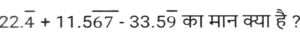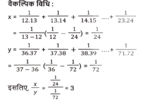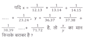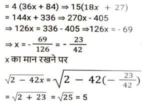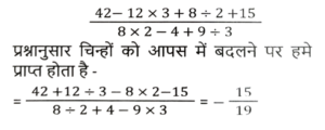 सरलीकरणTotal Questions: 5021. इसका मान क्या होगा ? [SSC CHSL 18/03/2020 (Morning)](a) 0(b) 2(c) 4(d) 1Correct Answer: (c) 4Solution:22. इसका मान क्या होगा ? [SSC CHSL 18/03/2020 (Morning)](a) 5(b) 6(c) 3(d) 4Correct Answer: (a) 5Solution:23. इसका मान क्या होगा ? [SSC CGL 03/03/2020 (Morning)](a) - 5/3(b) - 15/19(c) 15/19(d) 5/3Correct Answer: (b) - 15/19Solution:24. इसका मान क्या होगा ? [SSC CGL Tier II (13/09/2019)](a) 24.42(b) 24.24(c) 25.42(d) 25.48Correct Answer: (d) 25.48Solution:25. इसका मान क्या होगा ? [SSC CGL Tier II (12/09/2019)](a) -1(b) 1(c) 3(d) -3Correct Answer: (a) -1Solution:26. इसका मान क्या होगा ? [SSC CGL Tier II (11/09/2019)](a)(b)(c)(d)Correct Answer: (d)Solution:27. निम्न व्यंजक का मान ज्ञात करें। [SSC MTS 07/08/2019 (Morning)](a) 25/2(b) 19/2(c) 23/2(d) 21/2Correct Answer: (d) 21/2Solution:28. इसका मान क्या होगा ? [SSC CHSL 10/07/2019 (Evening)](a) 1/3(b) 1/24(c) 1/72(d) 3Correct Answer: (d) 3Solution:29. 0.01404 /24² + 6² - 144 का सरलीकृत मान है ? [SSC CHSL 10/07/2019 (Evening)](a) 3 ×10⁻⁵(b) 6 ×10⁻⁵(c) 2.4 × 10⁻⁴(d) 3 × 10⁻⁴Correct Answer: (a) 3 ×10⁻⁵Solution:30. 1.0025 + 6.25 × 10⁻⁶ / 0.0025 +0.95 का सरलीकृत मान क्या है ? [SSC CHSL 09/06/2019 (Evening)](a) 1.0025(b) 1.0525(c) 1.0005(d) 1.0505Correct Answer: (b) 1.0525Solution:Submit Quiz« Previous12345Next »
