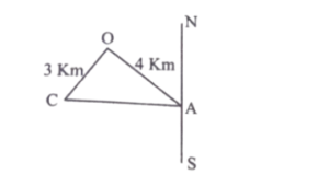पुनः दक्षिण पश्चिम में OC = 3 किमी. दूरी तय करता है।